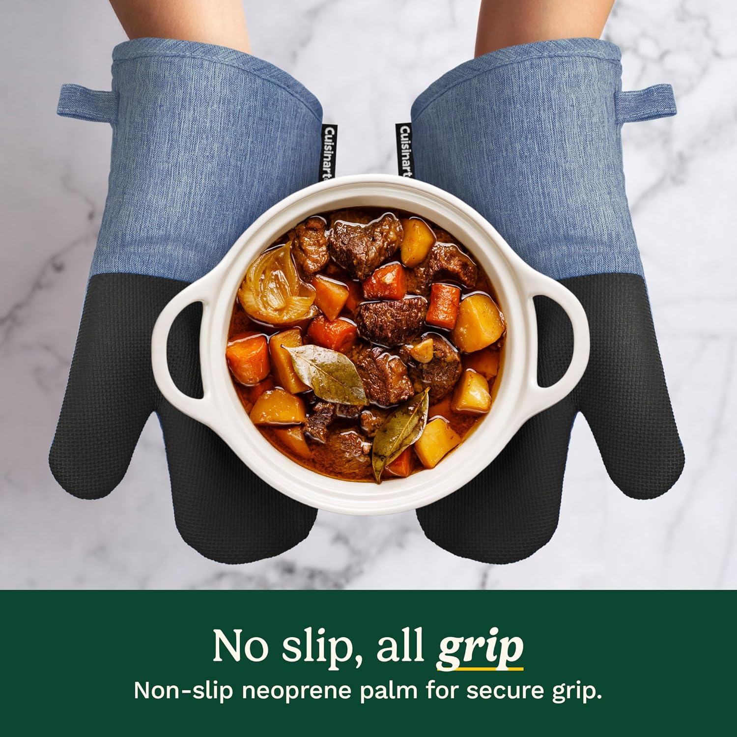 - THOUGHTFUL GIFT FOR ANY OCCASION: Ideal for bridal showers, holidays, weddings, and housewarmings; the Cuisinart Chambray Oven Mitts make a practical and stylish gift, combining comfort, durability, and versatility for any cooking enthusiast. A perfect addition to any pot holders for kitchen collection!