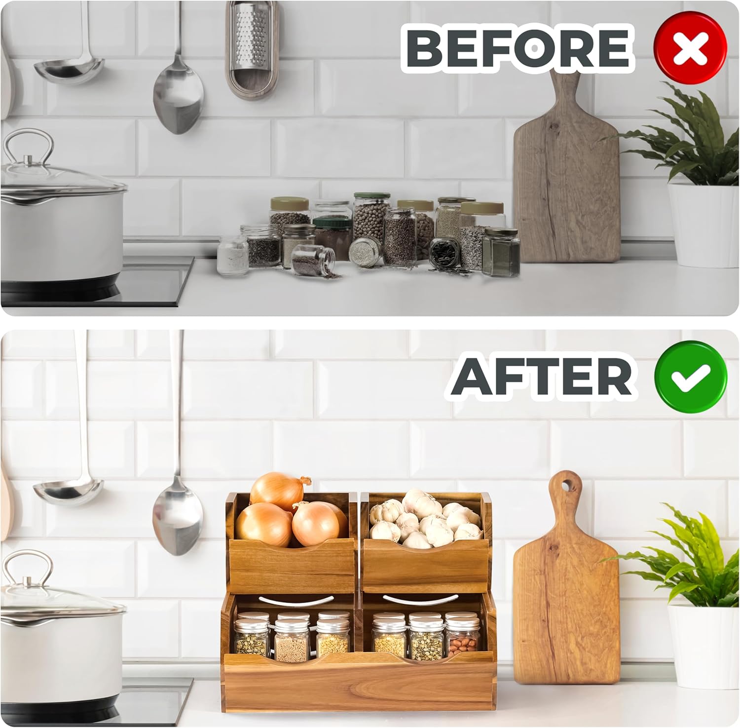 - π³ Expertly Crafted from Natural Acacia Wood: Made from premium Acacia wood, this organizer ensures durability and moisture resistance, perfect for humid environments like kitchens and pantries.