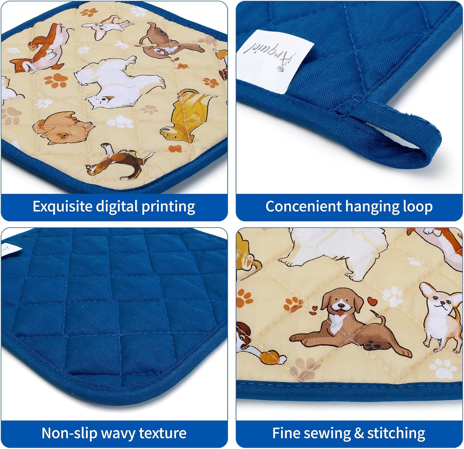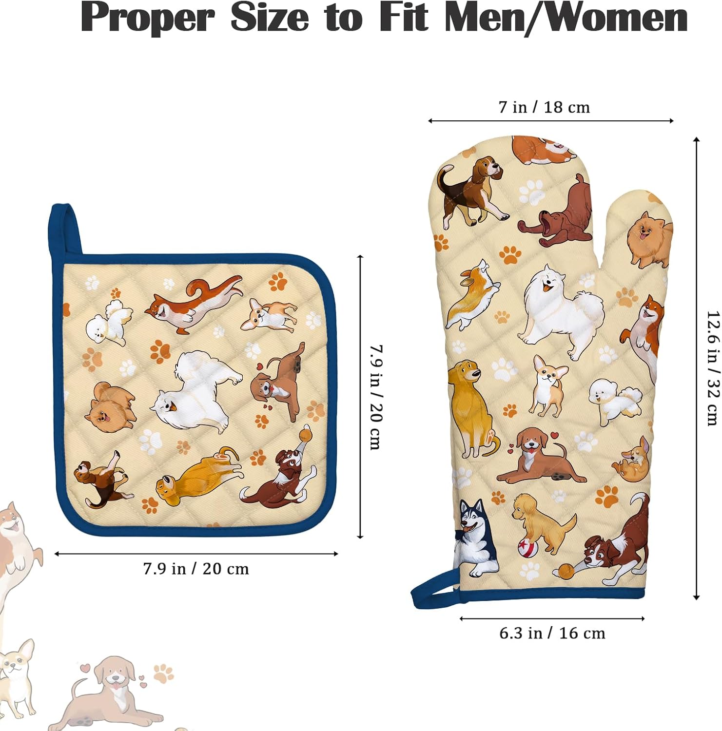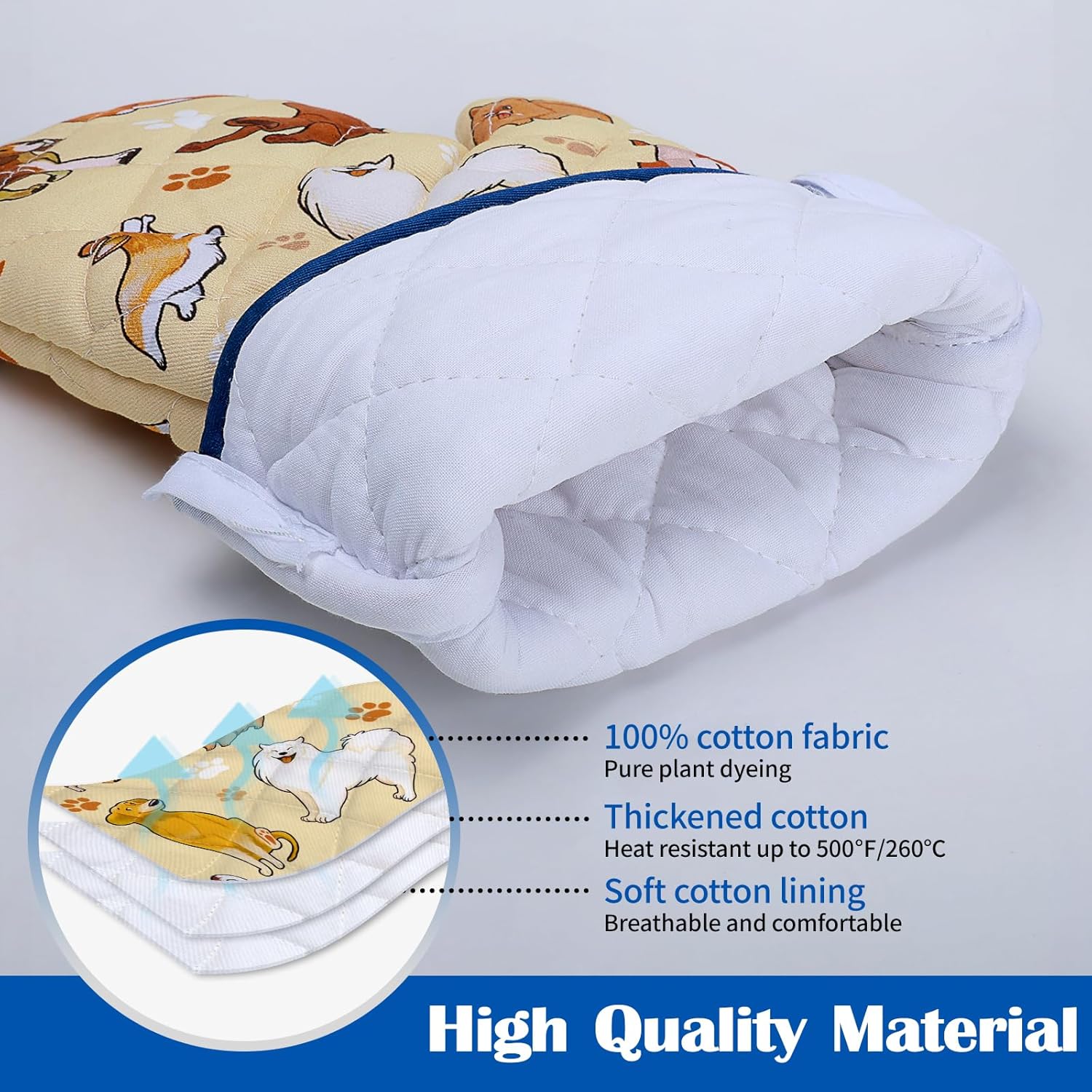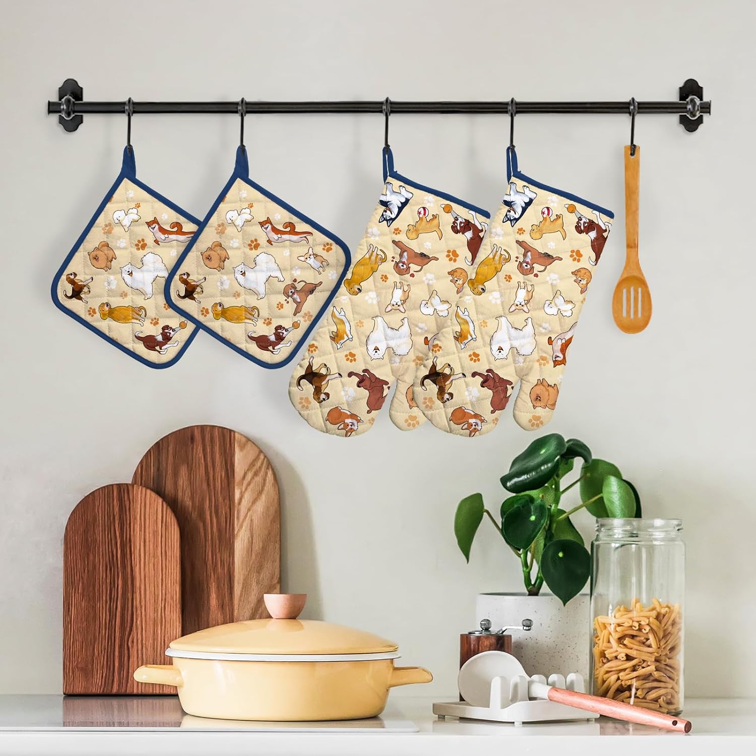 Dogs Oven Mitts and Pot Holders Sets 4Pcs, 100% Cotton Heat Resistant, Extra Long Oven Gloves Potholder for Kitchen Cooking Baking Housewarming