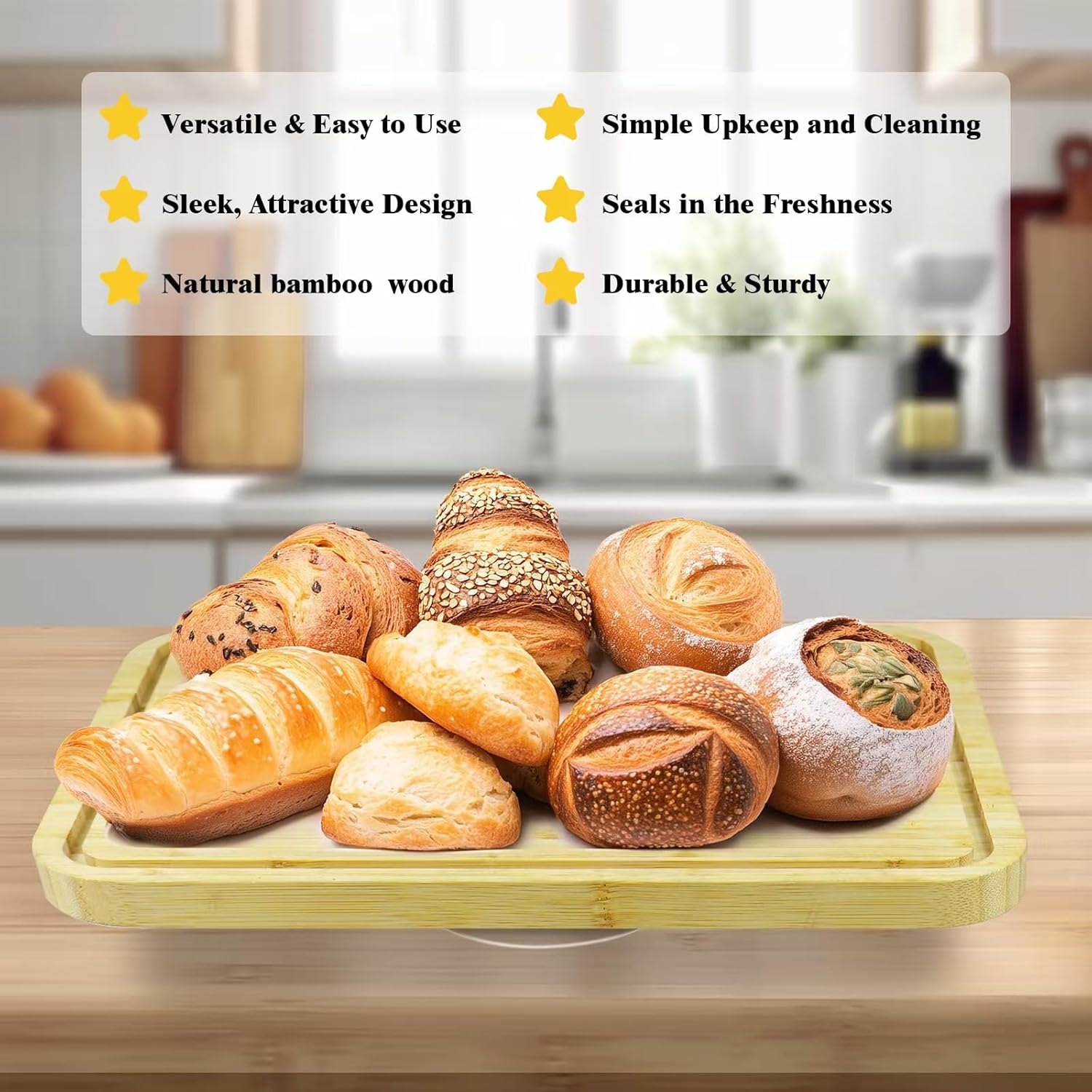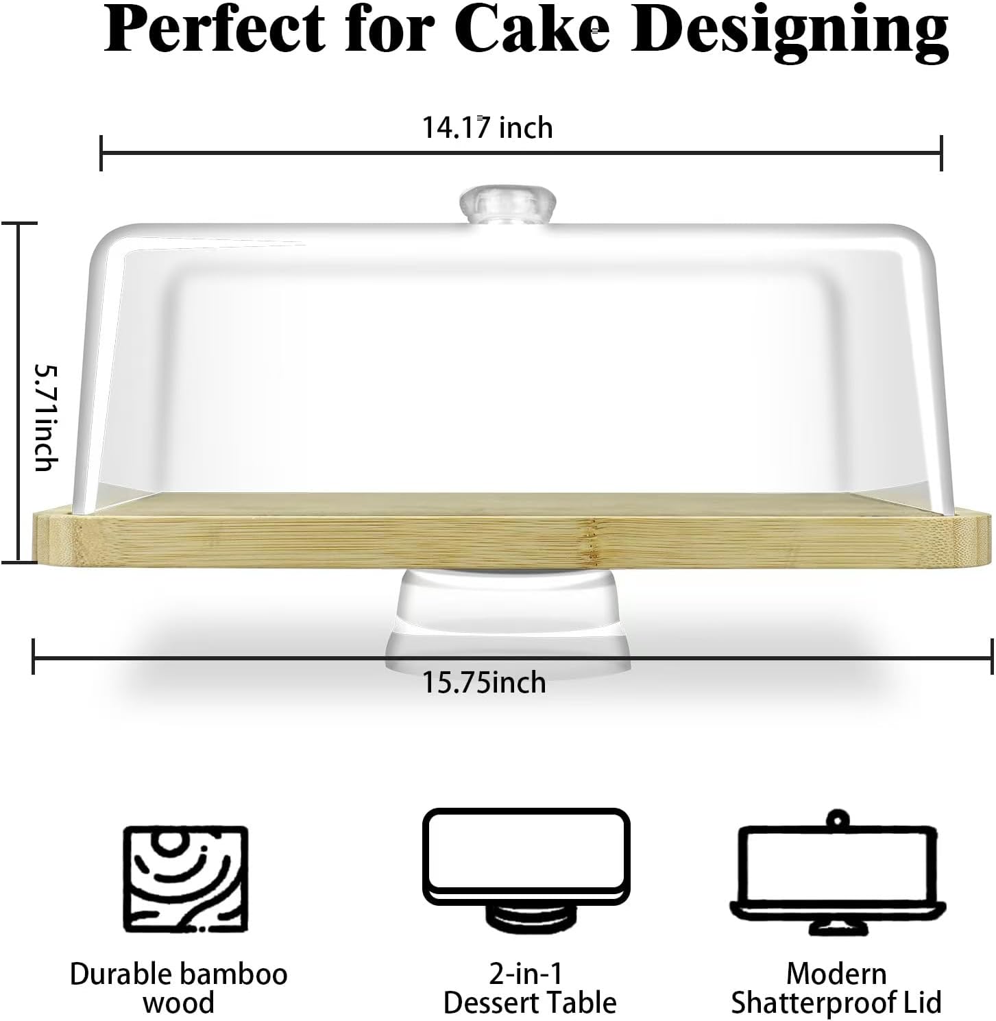 Cutesun Bamboo Wood Cake Stand with Lid - Rectangular Cake Holder, 16'' 2-in-1 Dessert Table Display Set & Charcuterie Board for Cheese, Chips, Fruit Platter, Large/big Acrylic Cake Dome Cover, Natural