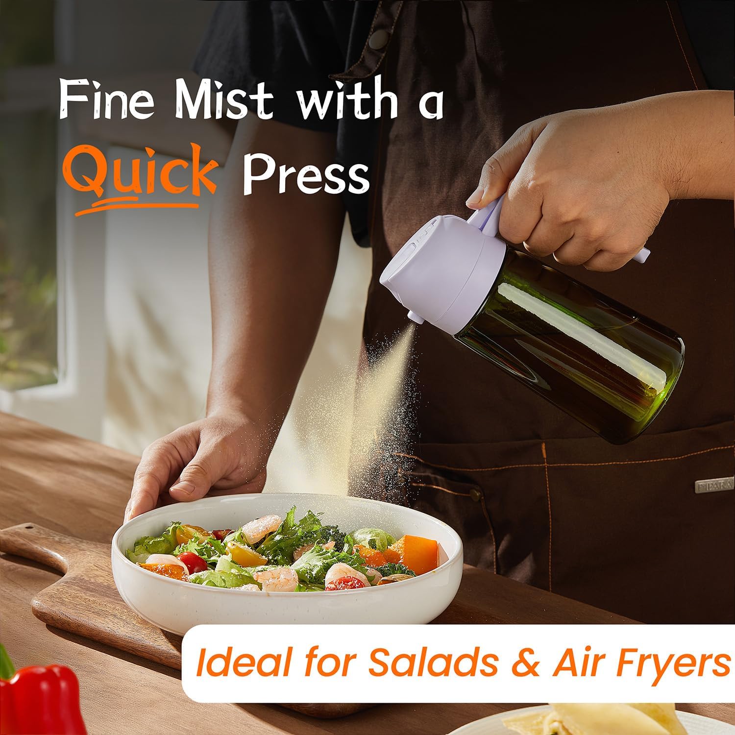 - Versatile Kitchen Tool: Combining the convenience of pouring and spraying in one bottle, this multifunctional design streamlines your cooking process. Whether you need a precise cooking spray for air frying or a controlled pour for stir-fries, it’s a practical addition to your kitchen appliances, keeping your kitchen clean and efficient