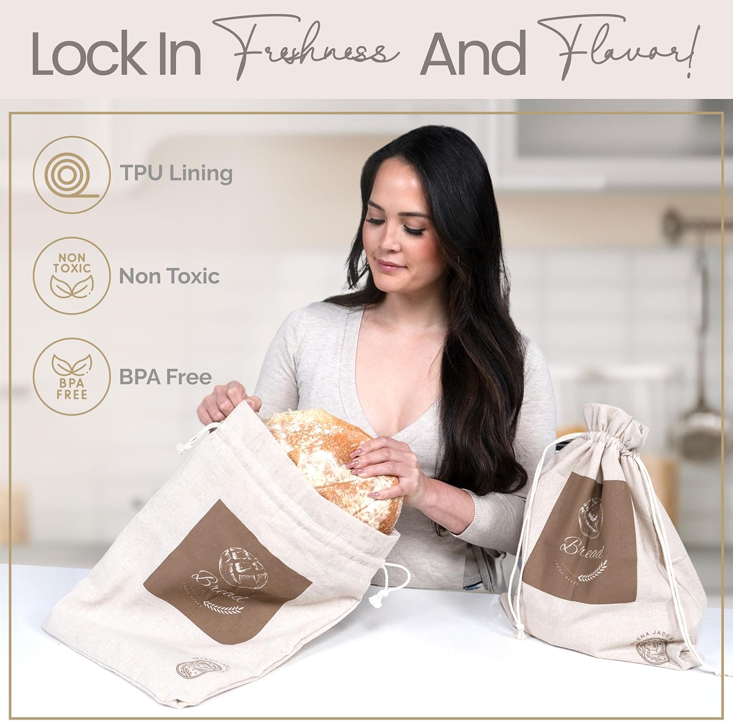- 𝗞𝗲𝗲𝗽 𝗬𝗼𝘂𝗿 𝗕𝗿𝗲𝗮𝗱 𝗙𝗿𝗲𝘀𝗵 𝗳𝗼𝗿 𝗗𝗮𝘆𝘀: Our reusable bread bags preserve homemade loaves by locking in moisture and maintaining a crisp crust with a soft crumb. The PABA-free plastic lining creates a food-safe barrier that extends freshness, keeping bread flavourful and preventing it from drying out.