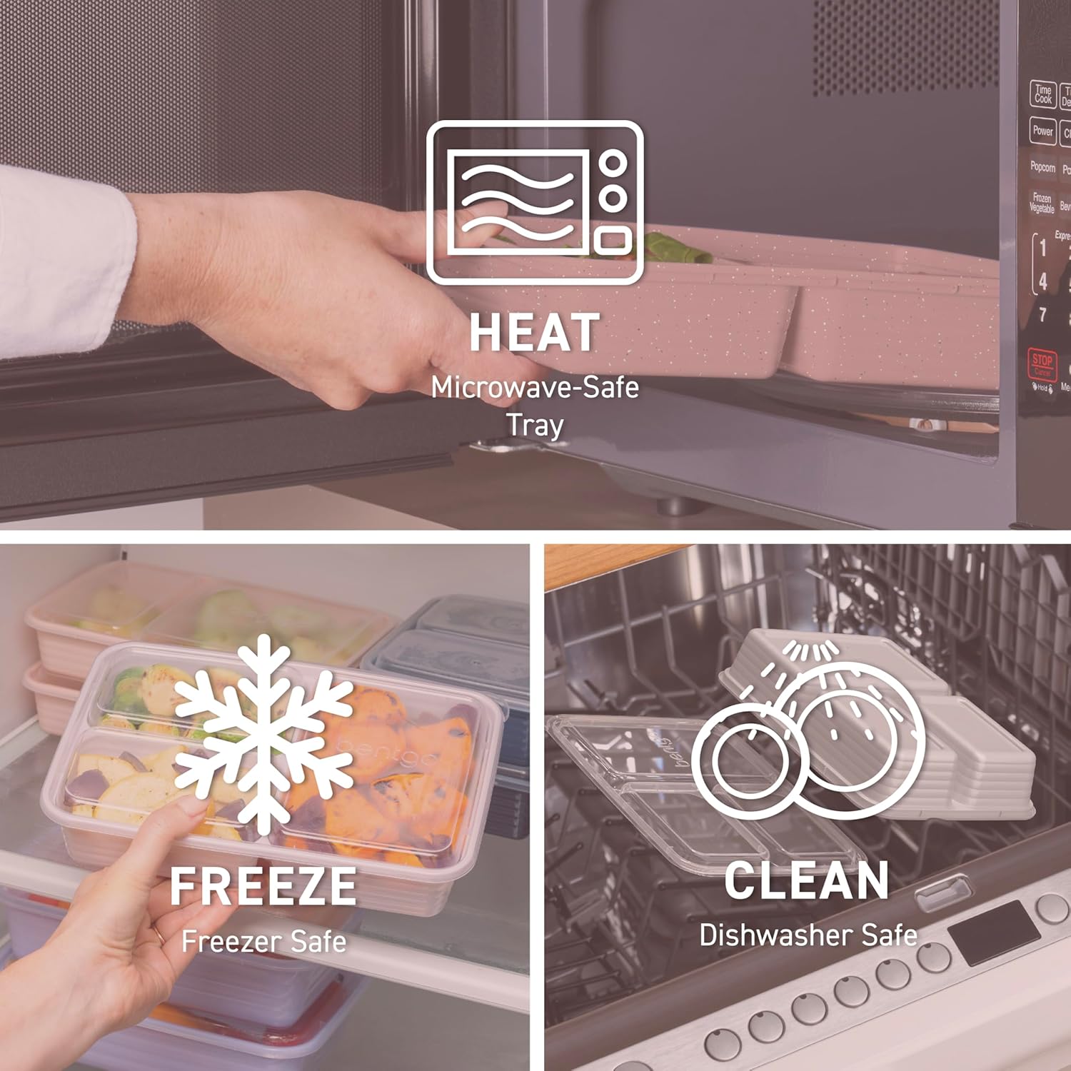 - Easy to Heat & Clean: Safely heat up your food straight from the freezer or refrigerator for warm, delicious meals and leftovers. Each meal prep container is both microwave and top-shelf dishwasher safe. Note: do not microwave lids, only the trays are microwavable. For best results, hand wash to extend the life of the product.