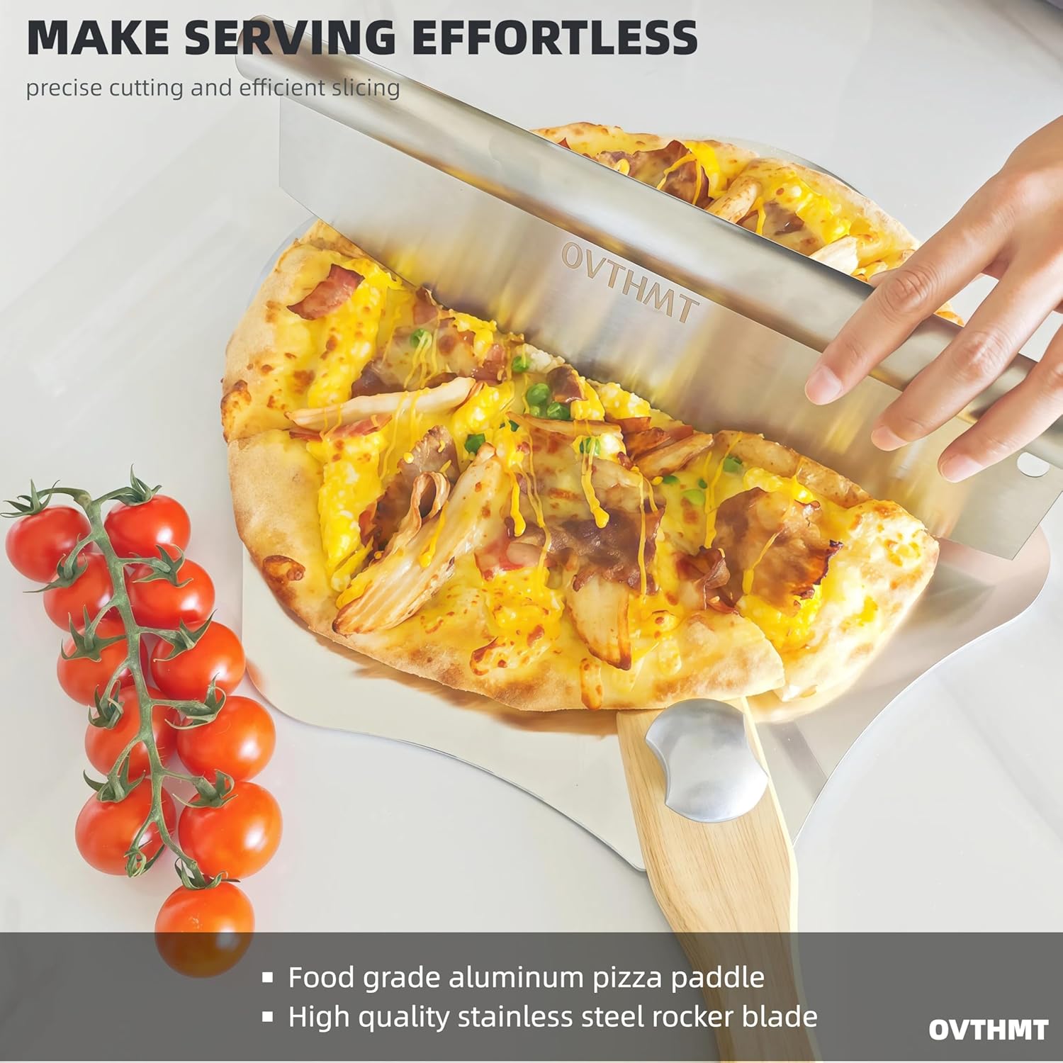 - COMPLETE SET: Professional pizza peel set includes a 12 inch pizza peel and pizza cutter rocker blade.