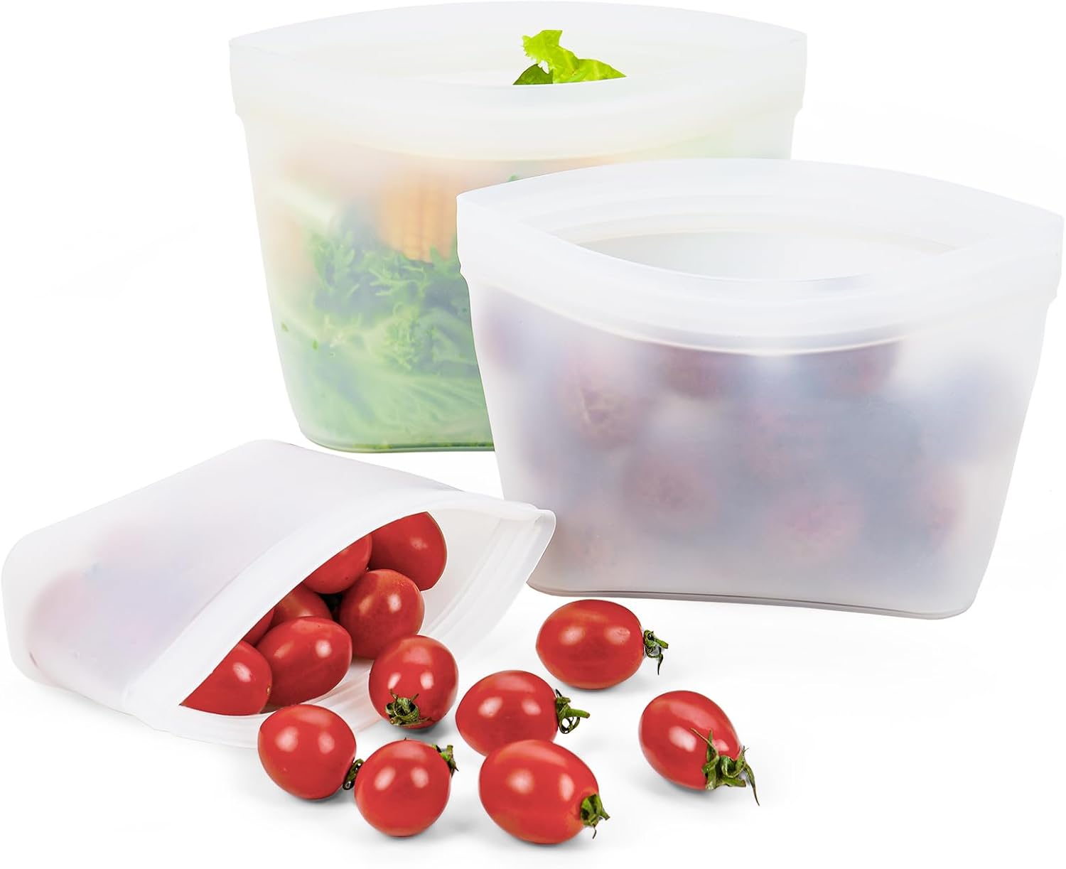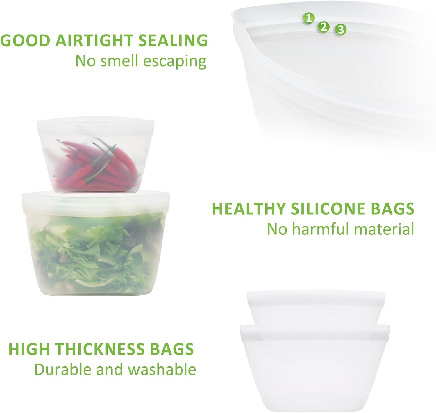 - ππππ ππ¨ ππππ, ππππ π πππ π ππππ: Reusable silicone food storage containers featured with triple zipper closures locks avoid leaking, can shake upside down securely, easier to open and close for anyone. Whether it's in a hurry or for a meal prep, your fruit, sandwich and snack stay perfectly contained, their flavors locked in and your fridge, countertops dry