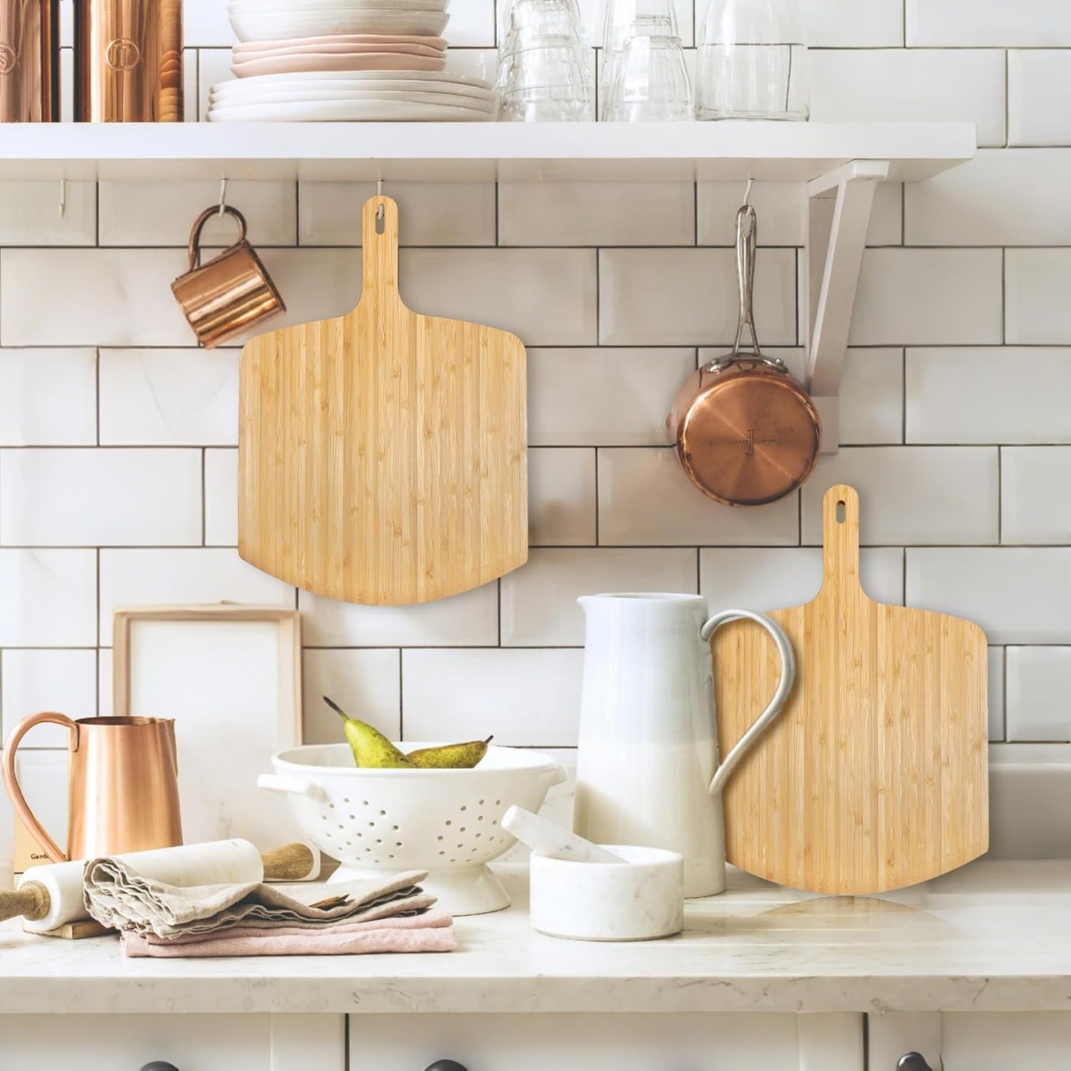 - Designing Features: Peels feature a tapered half-inch blade designed to easily slide under and lift pizza from a distance,big long hole in the handle allow for hanging on the wall.