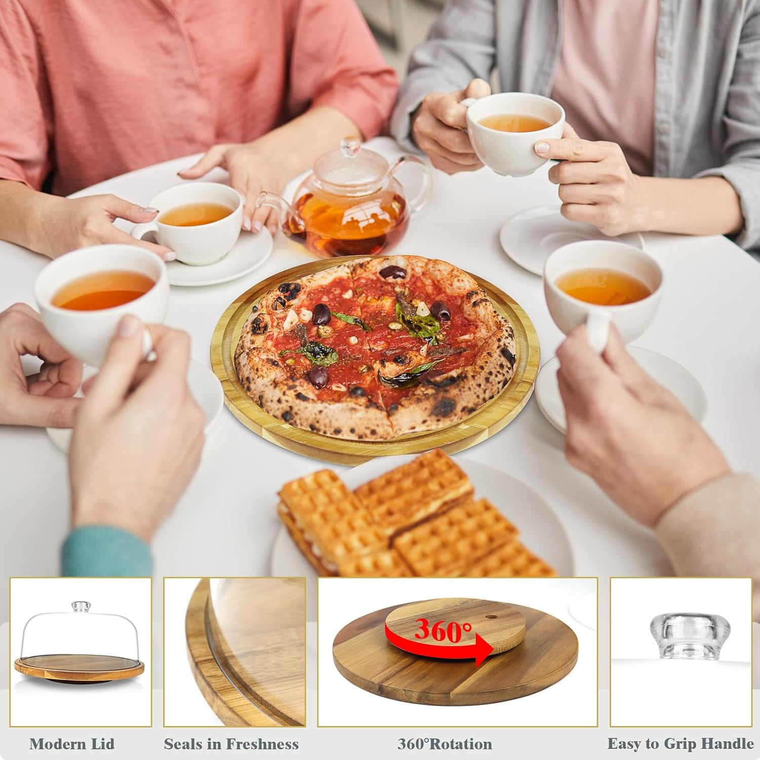 - 【VERSATILE】Not just a cake stand with a lid, but also perfect for pies, cheese, cookies, muffins, etc. You can also include your imagination, such as using it as a breakfast service plate or adding DIY decorations to it. Whether you are hosting a party or a family dinner, it is sure to make an impressive exhibit for your specialties; from appetizers to desserts.