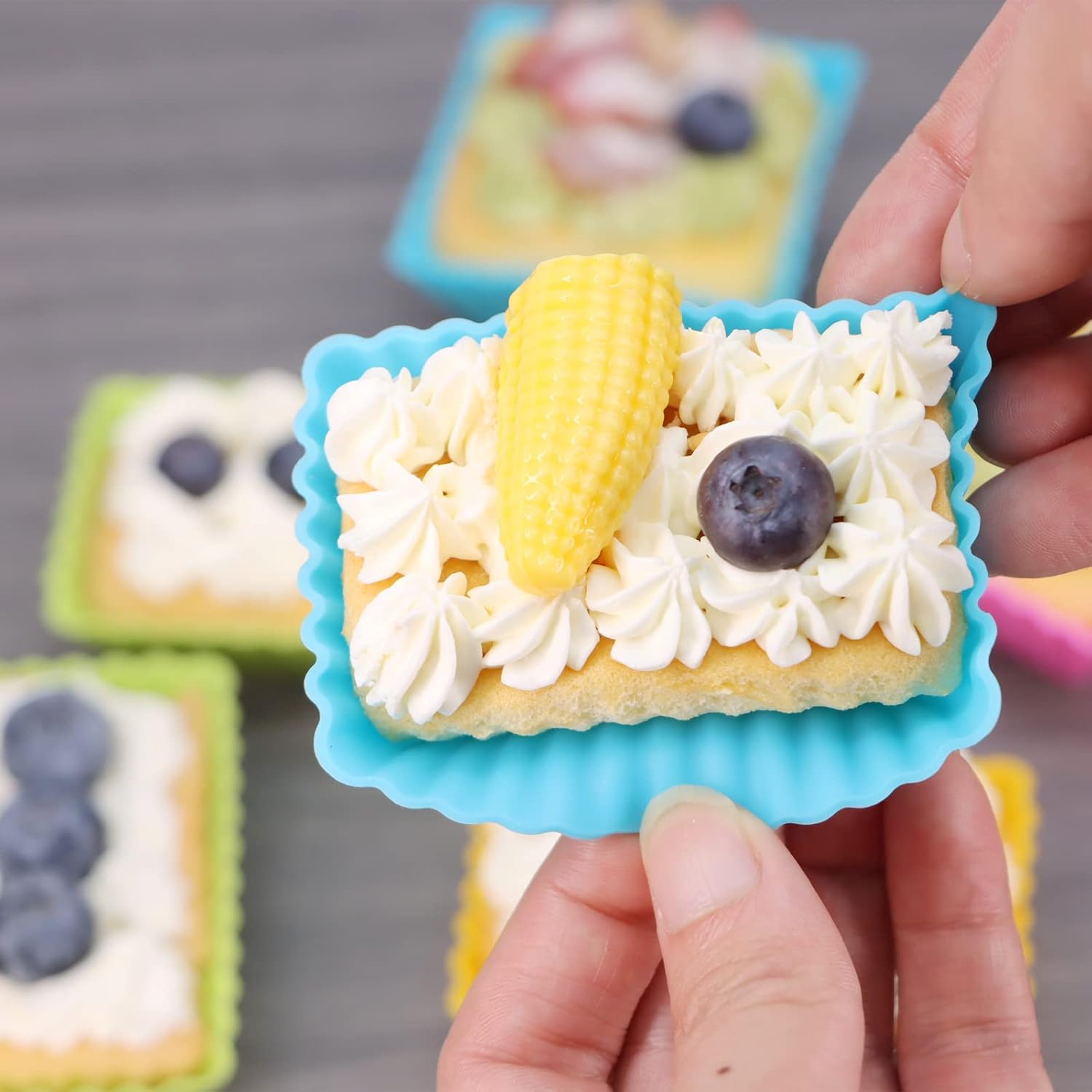 24Pack Silicone Muffin Cups, Reusable Cupcake Liners Molds for Baking, 3 Shapes Lunch Box Bento Dividers-Round, Square, and Rectangular (Colorsful, Large Size)