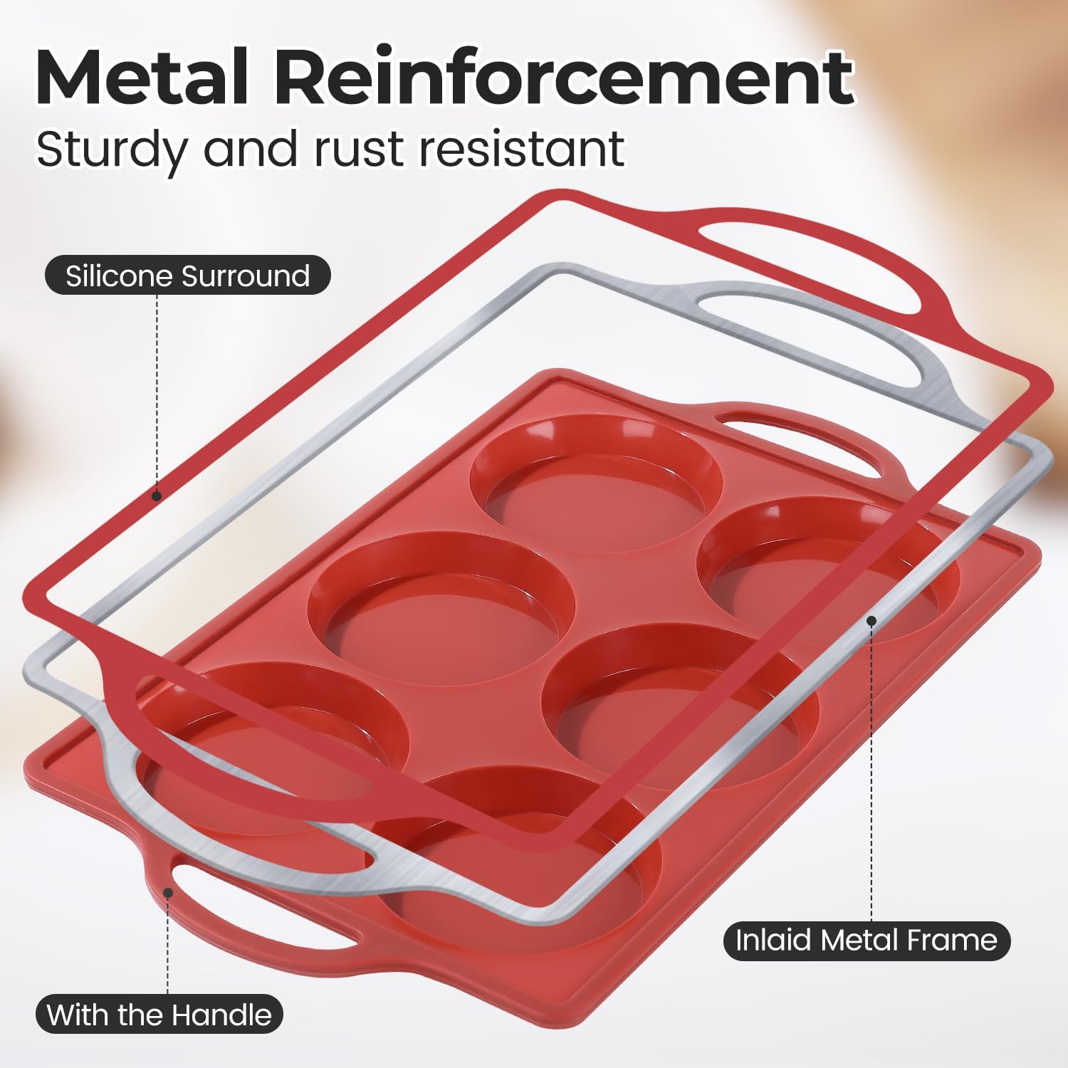 - The metal-reinforced stainless steel frame and 100% food-grade silicone make this baking tray more stable and avoid the problem of easy deformation of ordinary silicone baking trays. It is easier and safer to operate, and there is no need to worry about spilling food