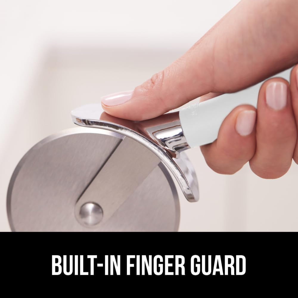 GORILLA GRIP BPA-Free Large Pizza Cutter Wheel, 9 Inch, Sharp Stainless Steel Blade, Slip Resistant Handle with Thumb Guard Protection, Slice Thick or Thin Pizzas, Pie, Pastries in Seconds, White