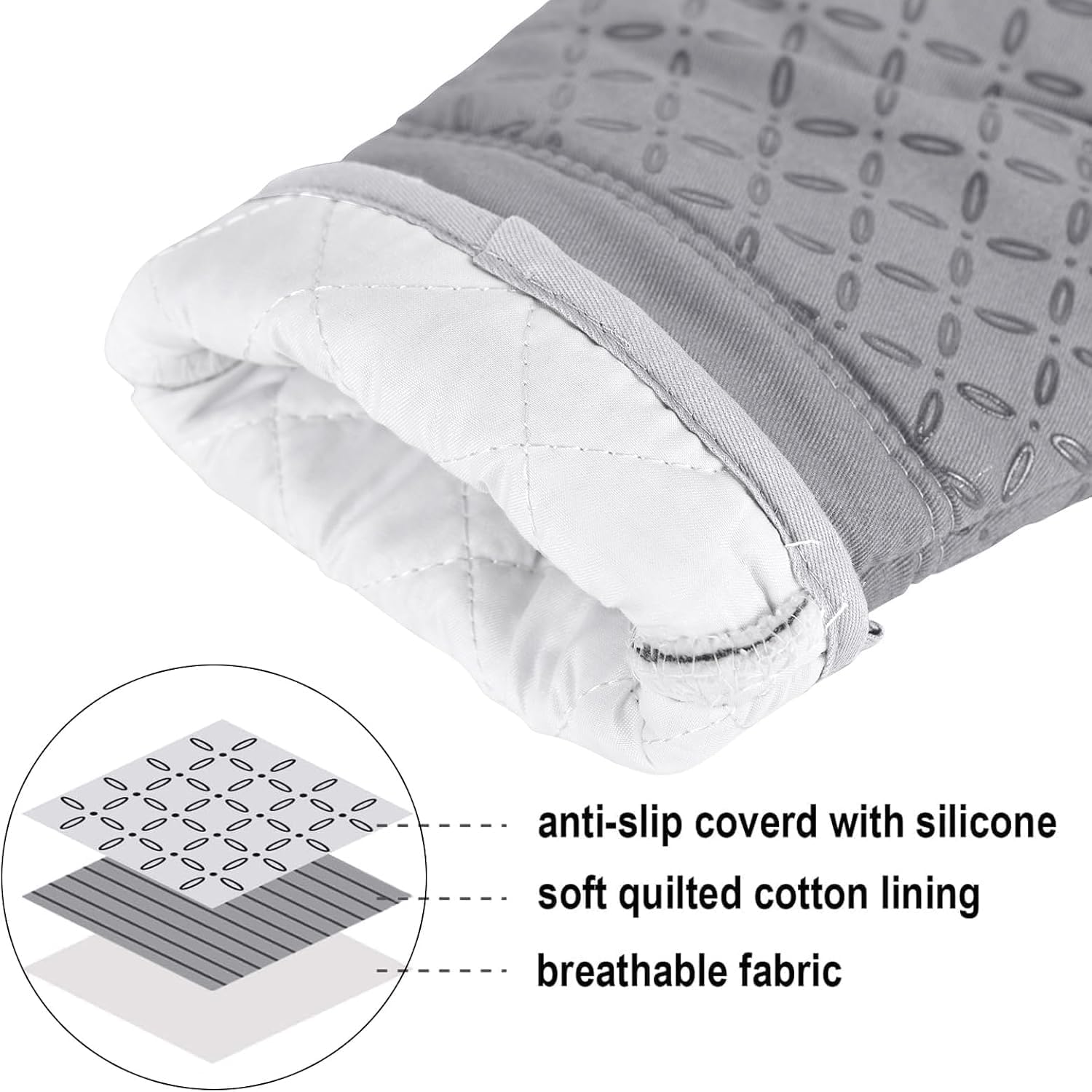 - 500Β°F HEAT RESISTANT &NON-SLIP: This oven mitts heat resistant 500 degrees because of the durable construction so it can effectively keep you protected from burning while you enjoy cooking and grilling. Enhanced with anti-slip silicone design to provide a more robust, non-slip grip that can be held securely when handling the kitchen utensils