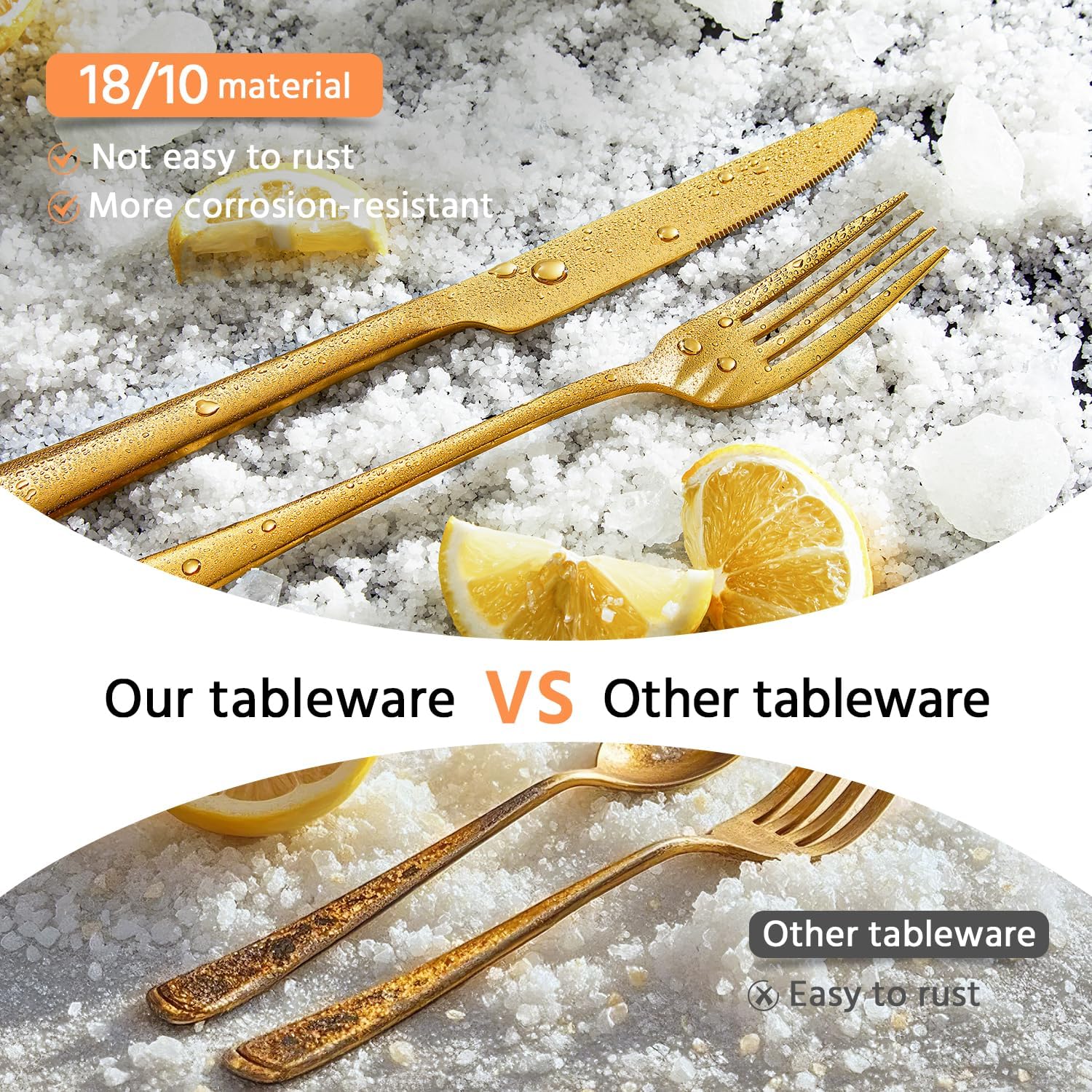 - 18/10 Stainless Steel - Our flatware sets are fabricated from high-quality 18/10 stainless steel,with sturdiness and balance, it offers optimal corrosion resistance and superior rust resistant qualities, it's heavier than usual but not too heavy, not easy to bend or warp, all our silverware sets are designed to be beautiful, handy and durable.