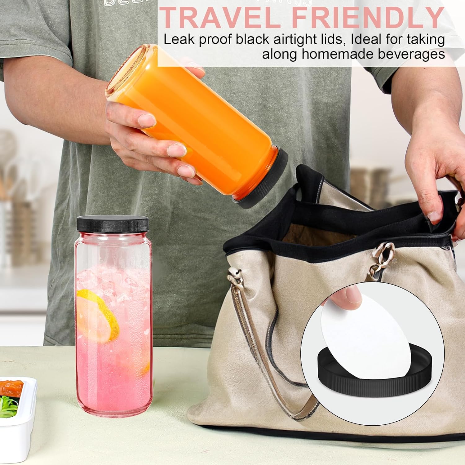 - Airtight and Leakproof Design:Each bottle comes with a secure lid,ensuring that your juices stay fresh and protected.The foam-lined lids create an airtight seal,making these bottles for juicing ideal for travel without worrying about spills.Enjoy your drinks worry-free,whether at home or on the move!