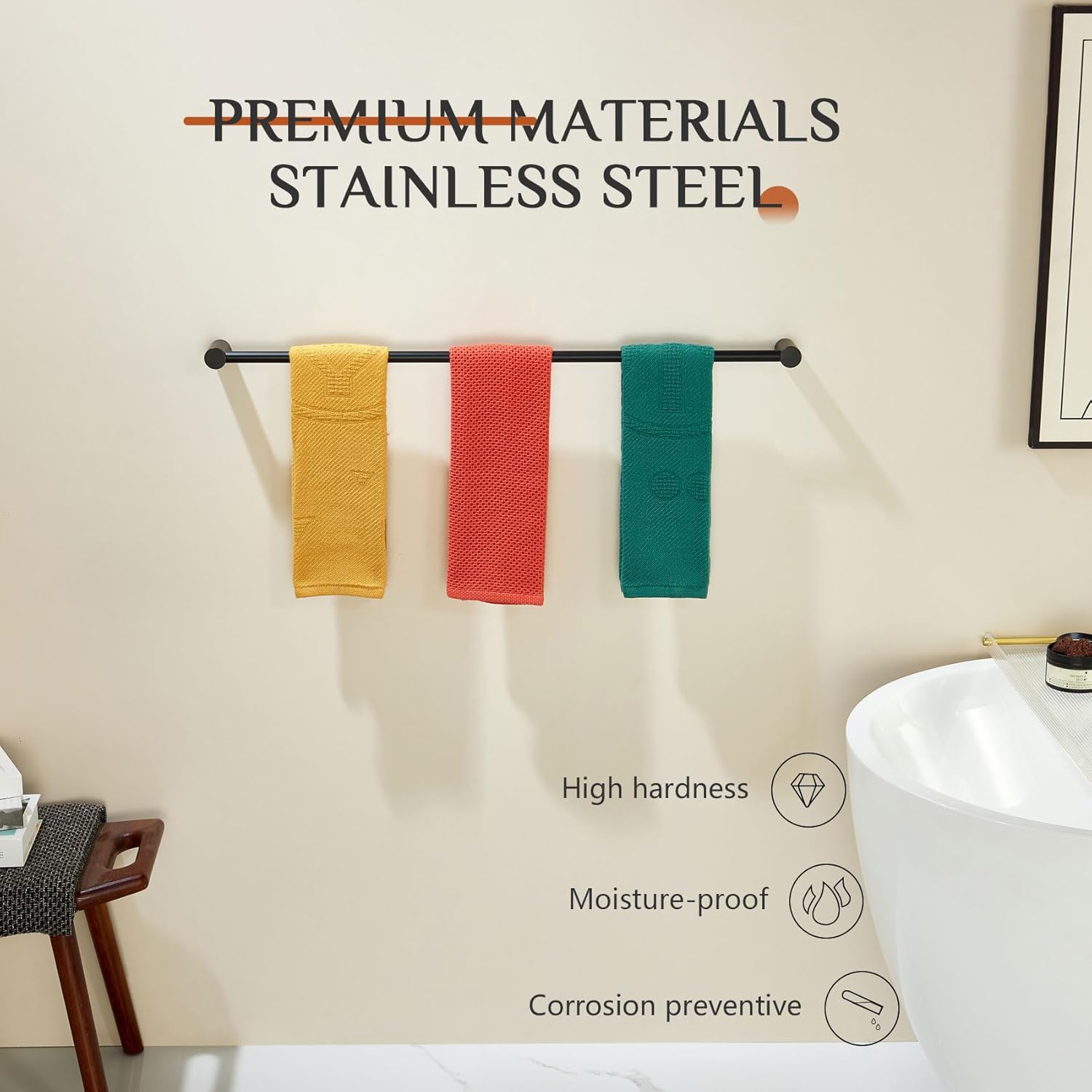- ◄ MATTE BLACK ► The bathroom towel holder is matte black finish which is fingerprint-proof and water-proof. And the surface covering is resisting daily scratches, corrosion, and tarnishing