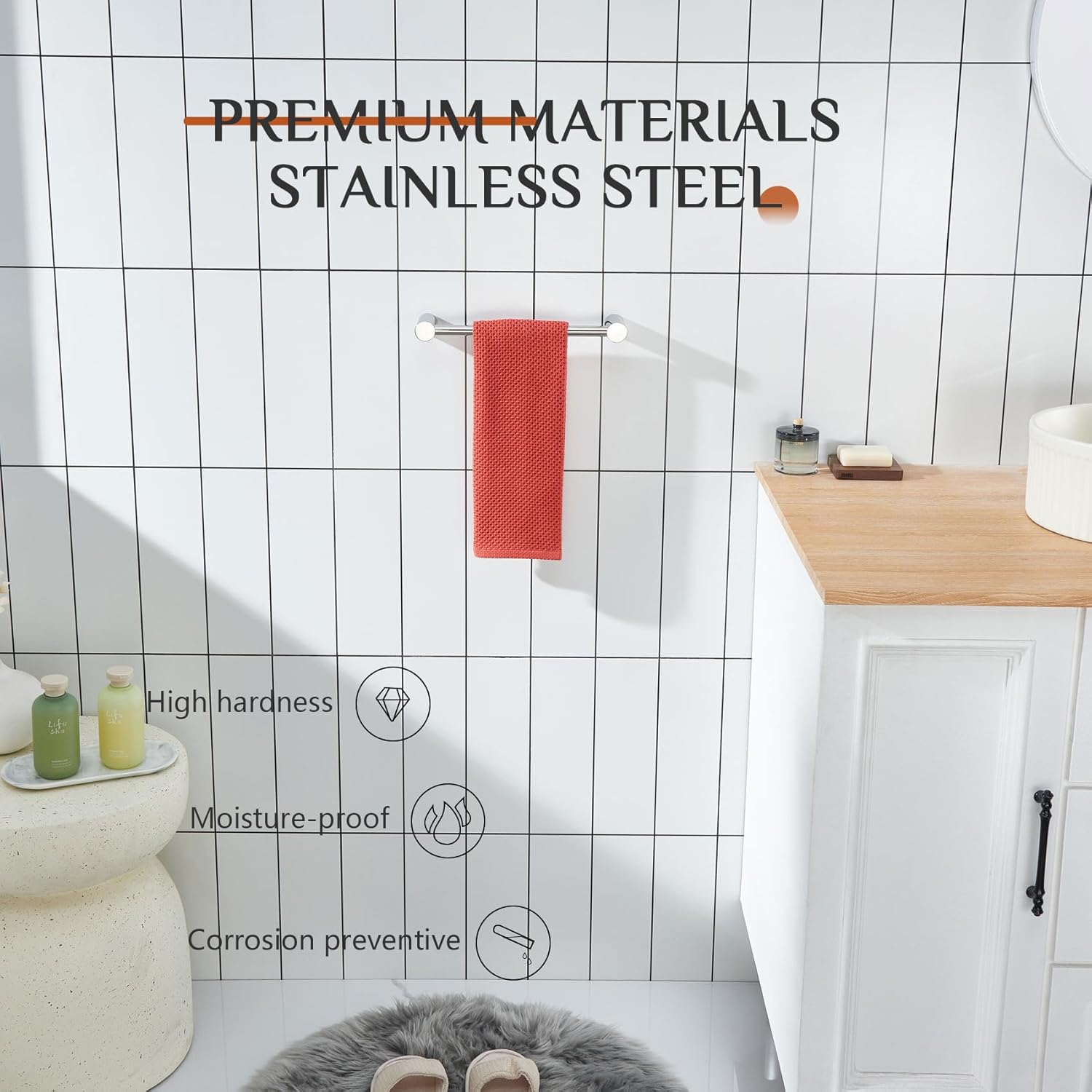 - ◄ ALL STAINLESS STEEL ► KOKOSIRI towel bar is made of T-304 Stainless Steel (premium steel). All stainless steel constructure which can resist rust and corrosion. For your health, all the materials we use are the highest quality and harmless. You can rest assured to use all of our products