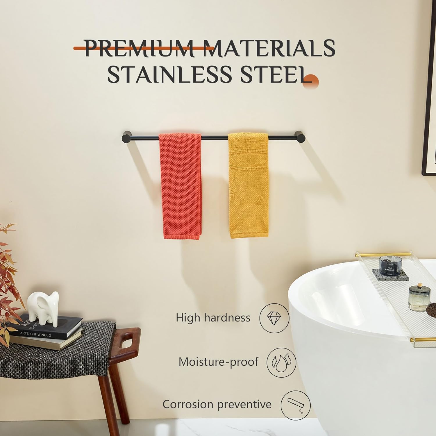 - ◄ ALL STAINLESS STEEL ► KOKOSIRI towel bar is made of T-304 Stainless Steel (premium steel). All stainless steel constructure which can resist rust and corrosion. For your health, all the materials we use are the highest quality and harmless. You can rest assured to use all of our products