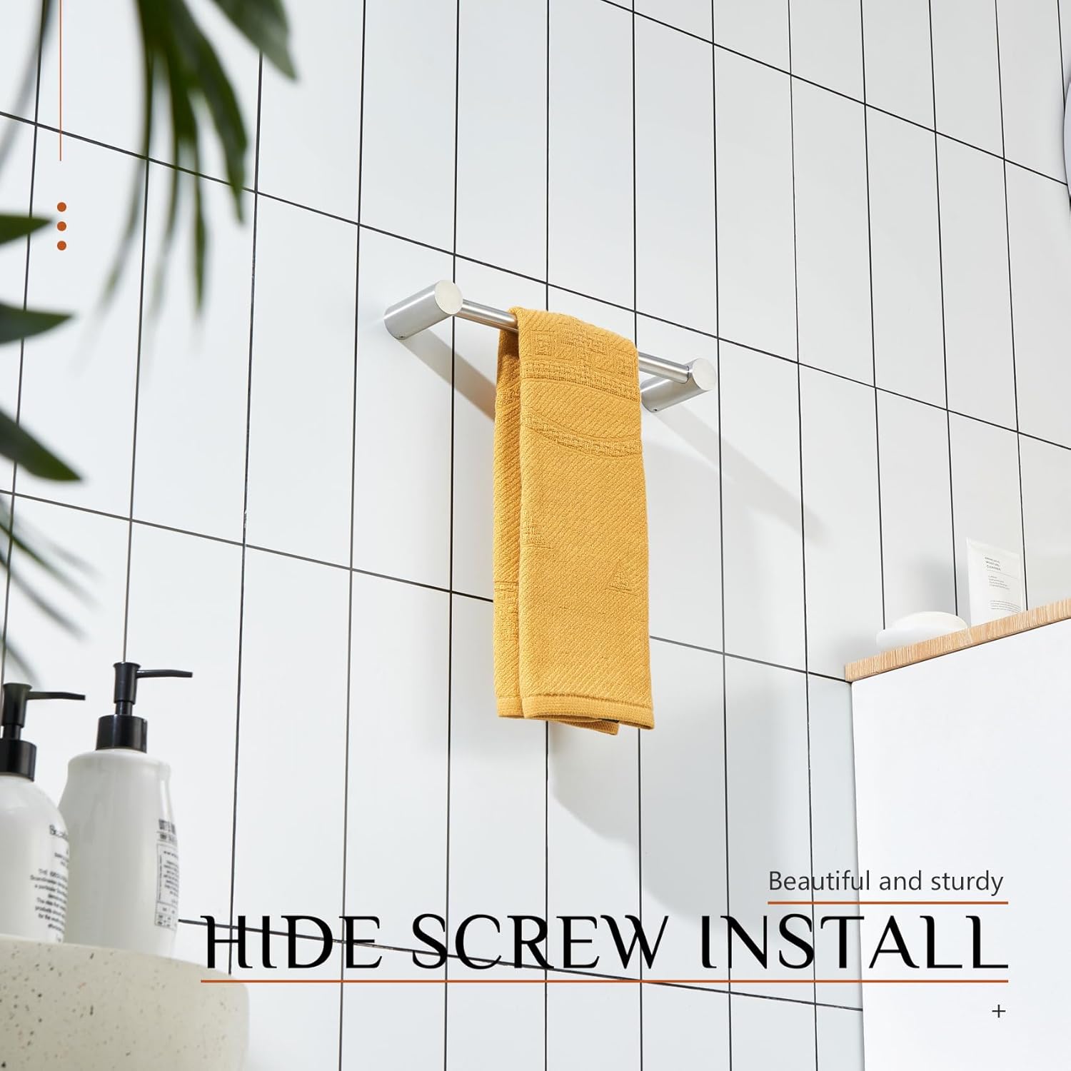 - ◄ BRUSHED NICKEL ► The bathroom towel holder is hand brushed finish which is fingerprint-proof and water-proof. And the surface covering is resisting daily scratches, corrosion, and tarnishing