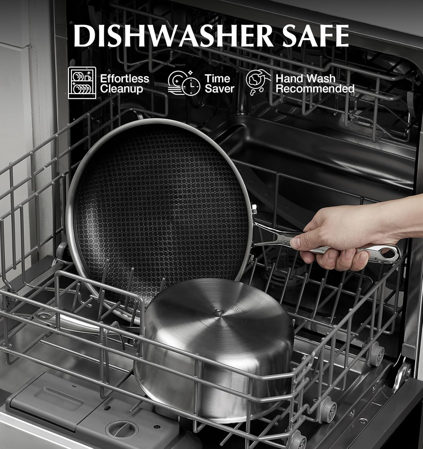 - Hybrid Honeycomb Interior: The innovative hybrid honeycomb design of stainless steel saucepan provides exceptional non-stick performance, allowing for easy cooking. Built for durability, it resists peeling and is safe for use with metal utensils, ensuring long-lasting reliability without compromising food quality.