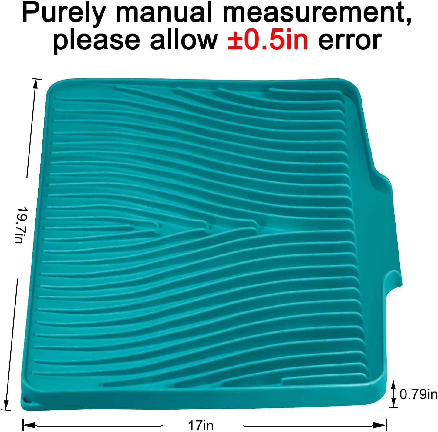 - Quick Drying Mat: TIKNIK dish drying mat measures 19.7" x 17", where washed dishes can be placed for air drying. The folding, raised and innovative design of the quick dry dish mat allows air to circulate under the dishes,and features unique diagonal ridges to easily remove moisture, and a specially designed rim that lets water drain directly into the sink. This keeps your countertops dry and clean, and says goodbye to wet countertops.