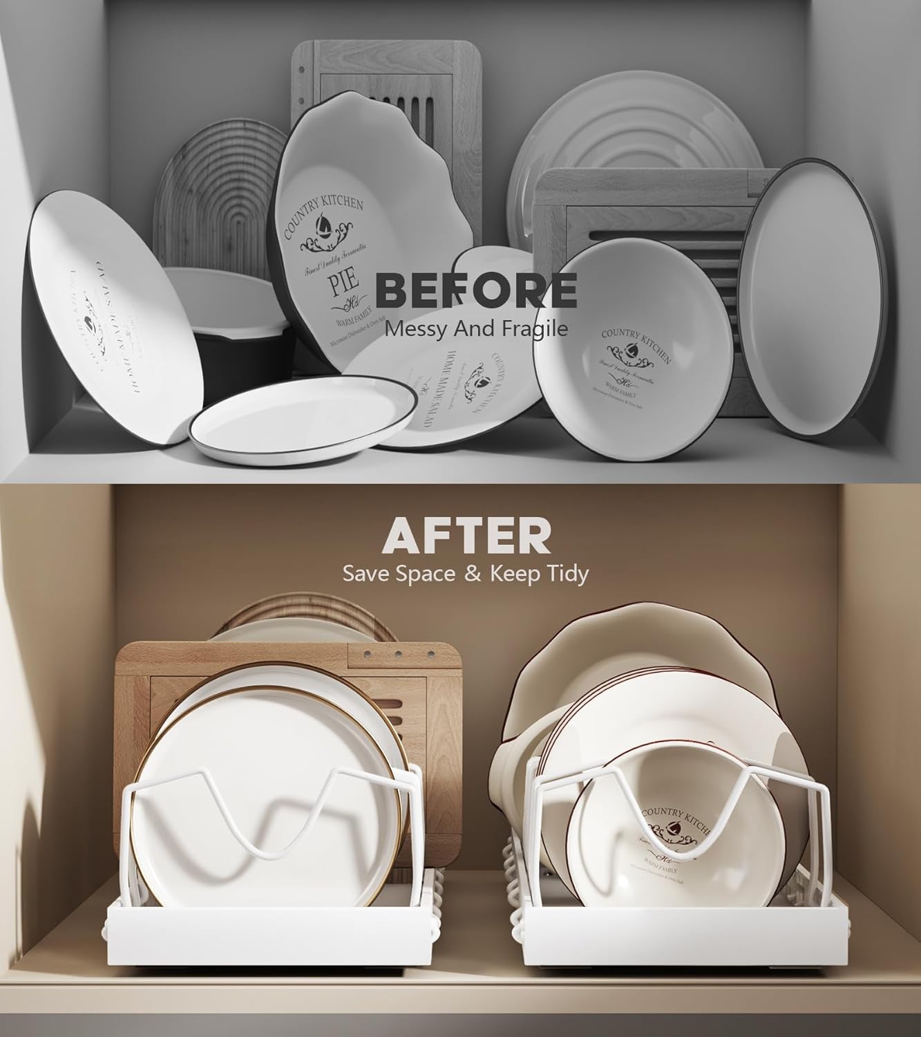 - 【Warm Tip】: Before purchasing, measure the depth and height of your cabinet to ensure that this pot and pan organizer comfortably fits with pans and lids in place. It fit most cabinets and counters but does not fit framed cabinet. Suitable for 6-10 inch lightweight pan. Please ensure that the cabinet width is greater than 10 inches, depth is greater than 20 inches, and height is greater than 12 inches.