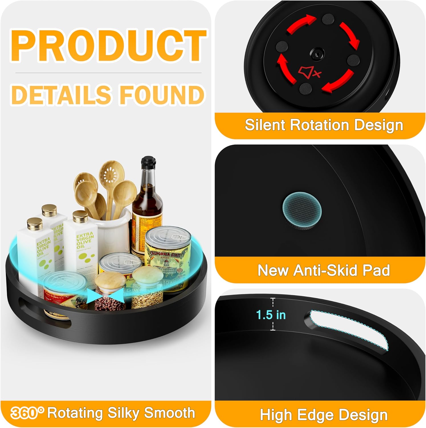 - ✔️【EASY TO REACH FROM ANY SIDE】This Lazy susan is 360-Degree turntable, which makes it ideal for cabinets or counters. Especially in corner cabinets and deep base cabinets where items can be hard to reach, always convenient to get things from upper shelves or corner cabinet just by a simple spin!
