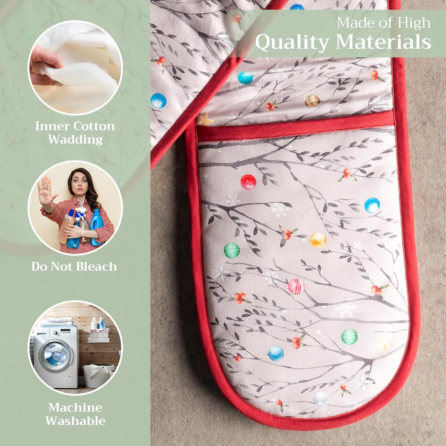 Maison d' Hermine Double Oven Mitt 100% Cotton Heat Resistant Cooking Gloves with Loop, Baking Barbeque, Handling Hot Pan, Fairy Christmas - Thanksgiving/Christmas (7 Inch x 35 Inch)
