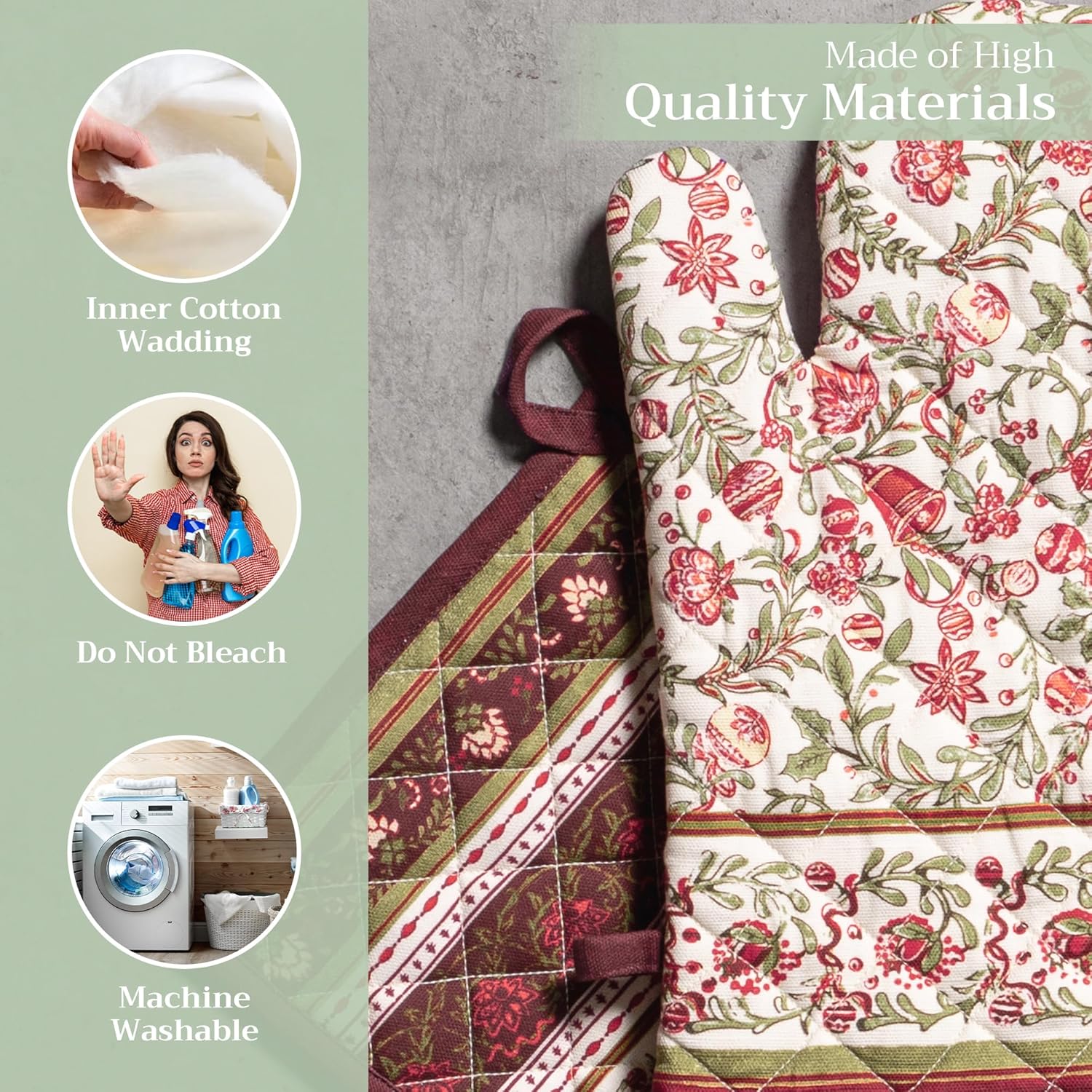 - Premium Quality: Crafted from quilted 100% cotton, this heat resistant oven mitt and pot holder set offers comfort, flexibility, and protection from hot cookware. Ideal cotton oven mitts for daily kitchen use and cooking safety
