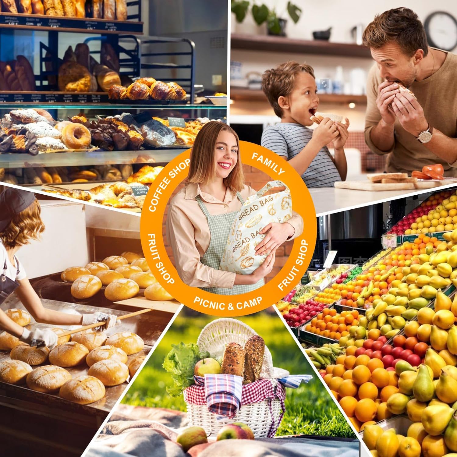- PERFECT GIFT FOR BREAD LOVERS : Our artisan bread bags feature a roll and lock closure that doubles as a convenient handle for easy transportation.These bags are essential in bread making, ensuring that the bread is fresh and delicious. Surprise loved ones with practical and eco-friendly bread freezer bags and large bread bags for a pleasant baking time.