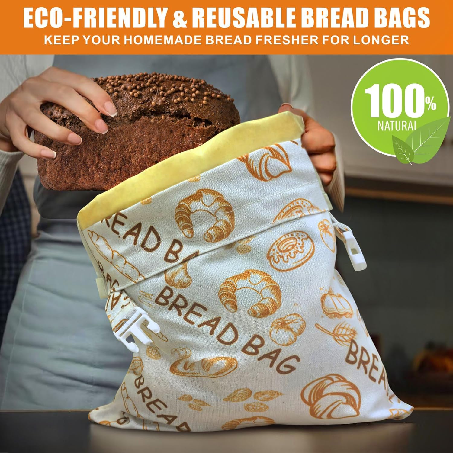 - KEEP YOUR BREAD FRESH οΌ Our sourdough bread bags made of 100% cotton fabric, organic beeswax, natural Jojoba oil, and natural tree resin, creates a breathable barrier, sealing in moisture and maintaining the homemade goodness of your bread and baked goods. The sourdough bread storage bags helps ensure it retains its irresistible freshness for an extended duration.These reusable bread bagsβ long-term freshness preservation function can prevent food waste.