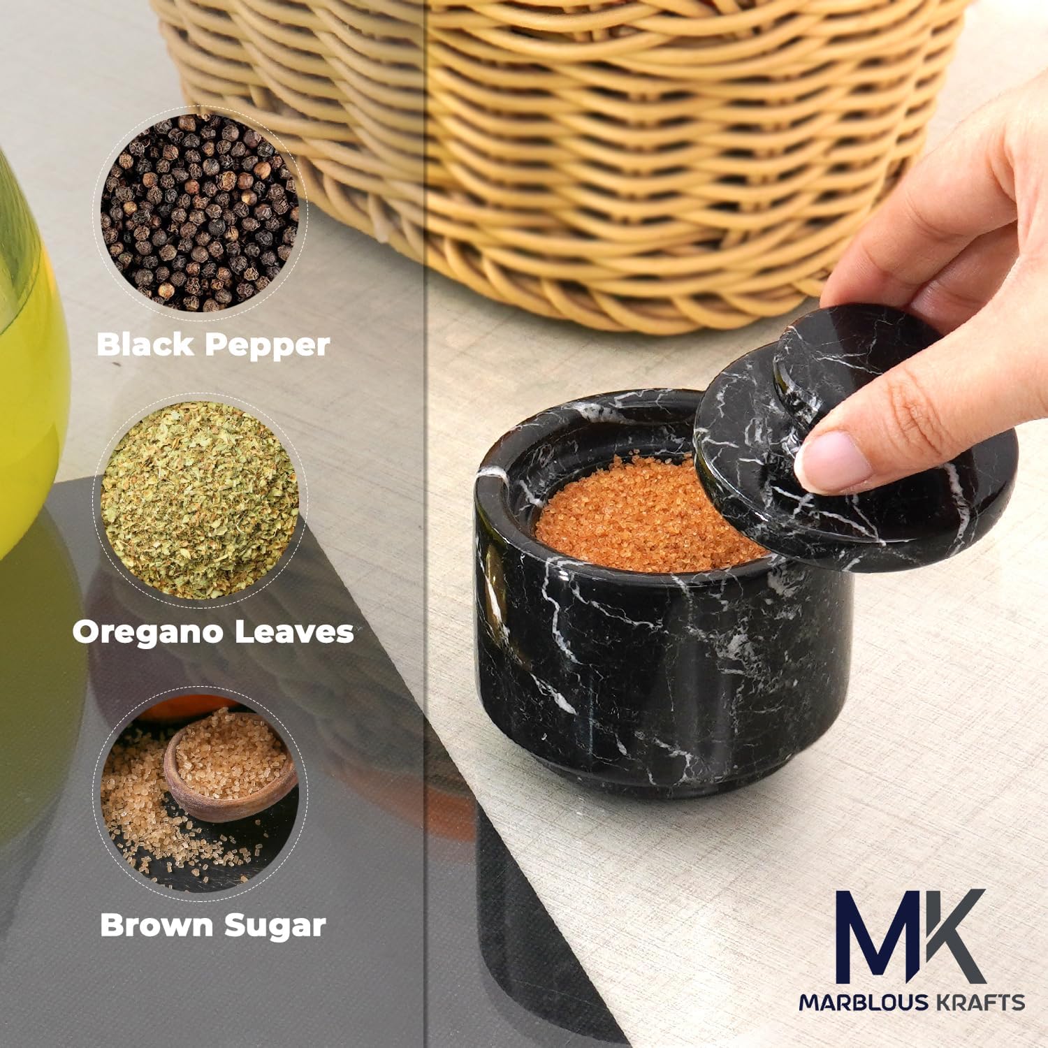 - WHAT IS INCLUDED- 1x Premium Marble Salt Cellar With Lid. Comes Along With securely packaged with Marblous Kraft branded packaging.