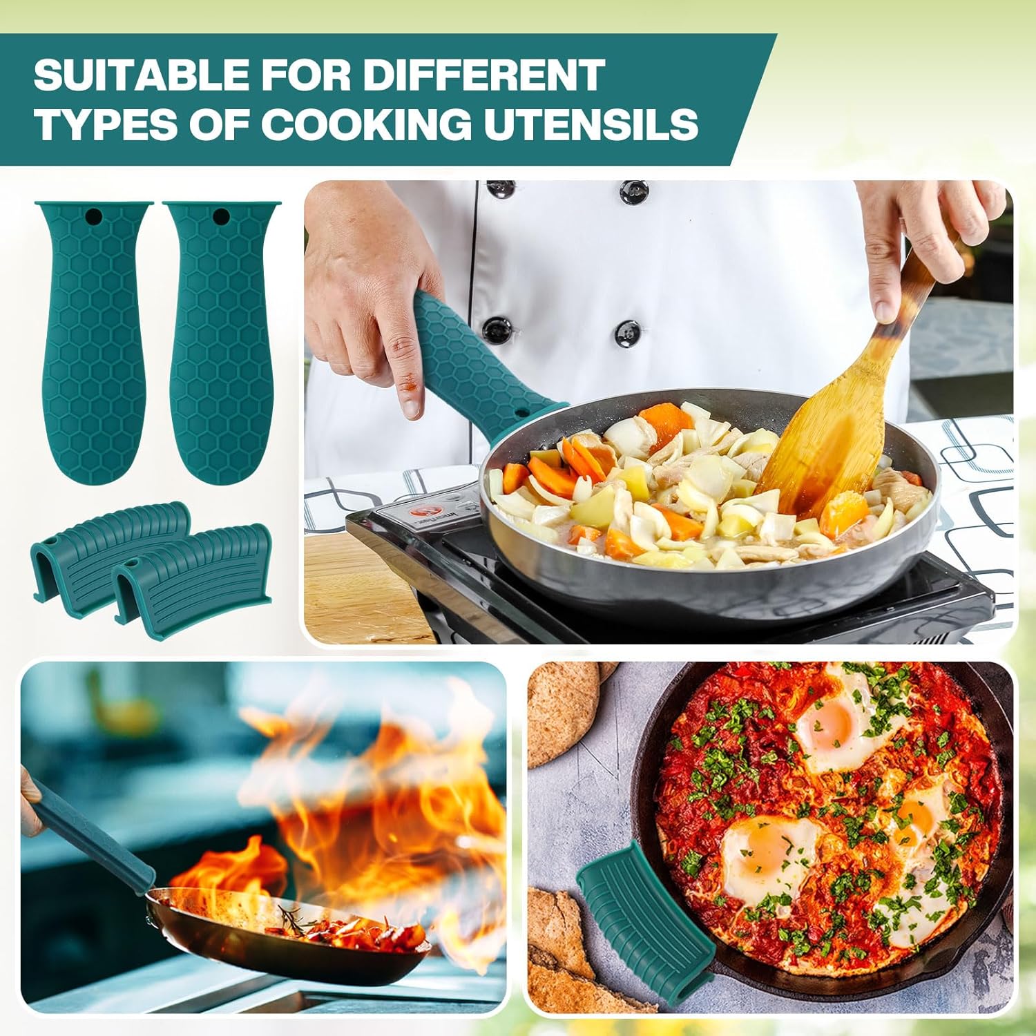 - Package content: there are 4 pieces of silicone hot handle holders that come in green, 4 pieces of silicone assist handle holders available in green, enough quantity and classic style enough for your daily use, can be changed and shared, and easy to find; Suitable for using at home, travel or camping, nice gift for Mother's Day, birthday, holidays, housewarming, chef and hostess