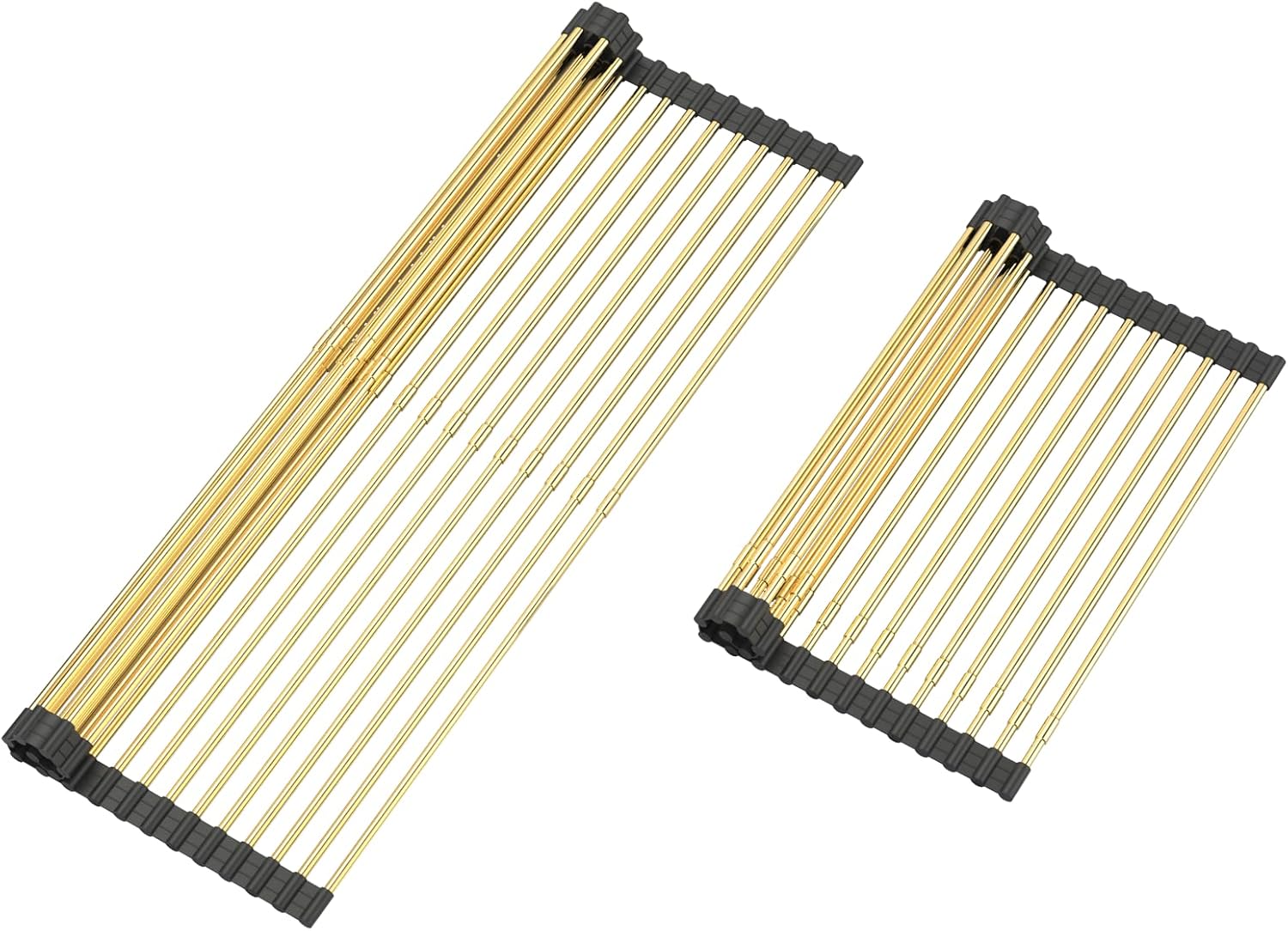 Large Telescopic Draining Rack, Gold Roll Up Heat-Resistant Dish Drainer for Stainless Steel Sinks, Non-Slip Silicone Rolling Dish Drainer Roll Rack 18 tube12.59-21.25x12.79''