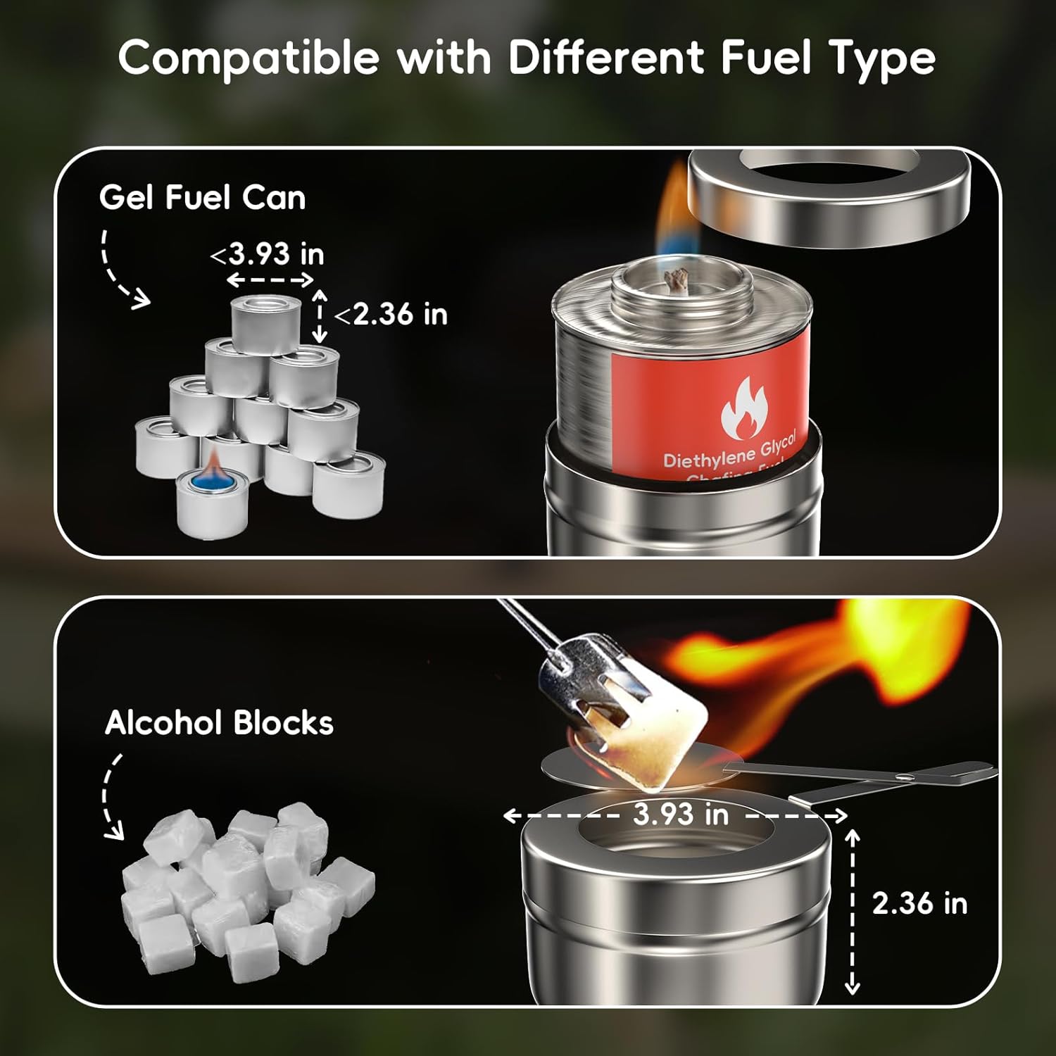 - TEMPERATURE CONTROL: The chafers and buffet warmers sets possess the versatility to keep food warm or cold. For warming the food, you need to pour hot water into the water pan and then kindle the fuel in the fuel burners. On the other hand, should you aim to maintain the food at a cold temperature, all you have to do is place ice into the water pan