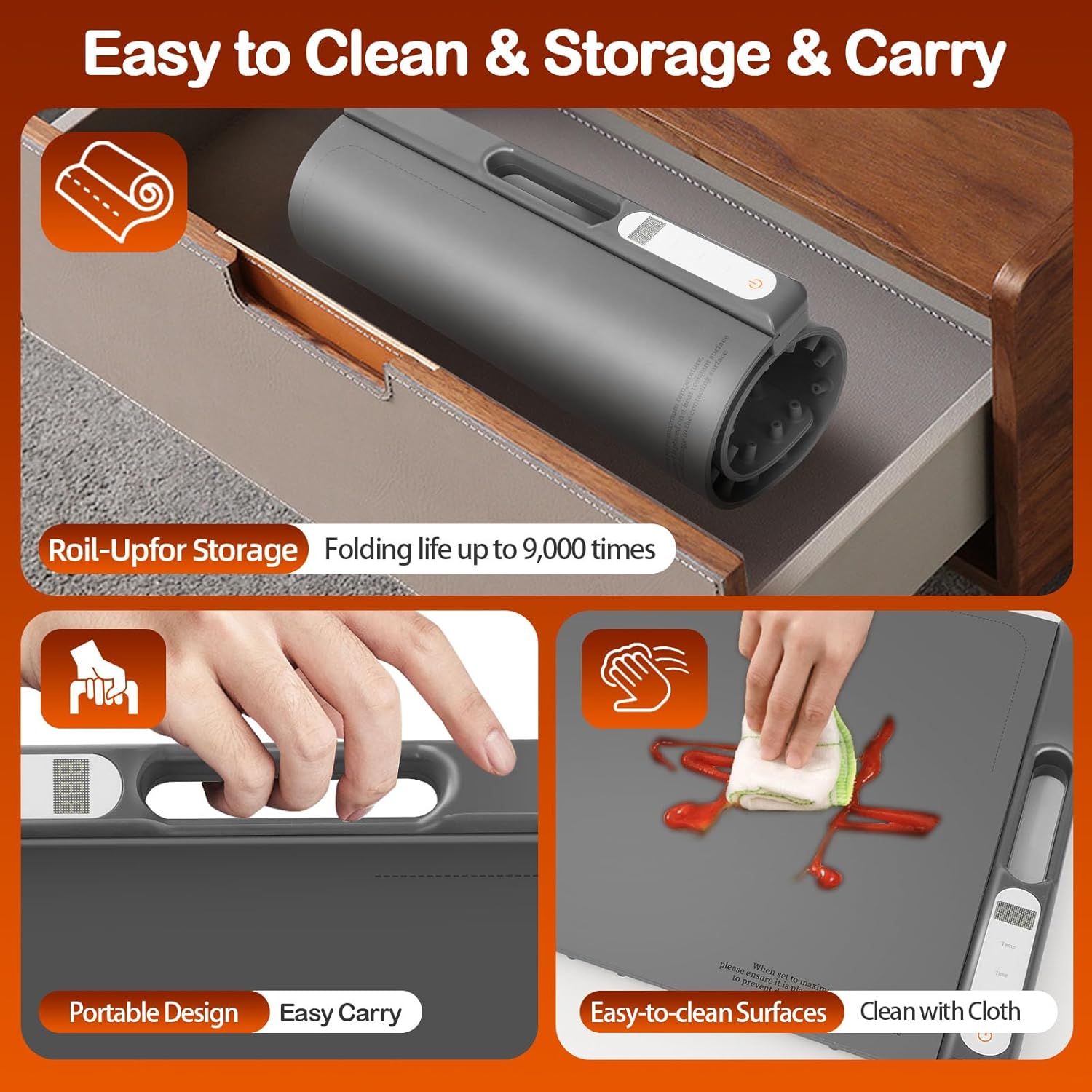 - [Adjustable 8-Level temperature control] Silicone electric warming mat for food features 8 adjustable temperature settings (86β-212β), perfect for defrosting, heating, and keeping meals warm. Designed as a countertop food warming mat with temp control, it supports sourdough starters, bread proofing, and seed germination. The NTC temperature module ensures precise heat distribution for both small and extra-large buffet setups.