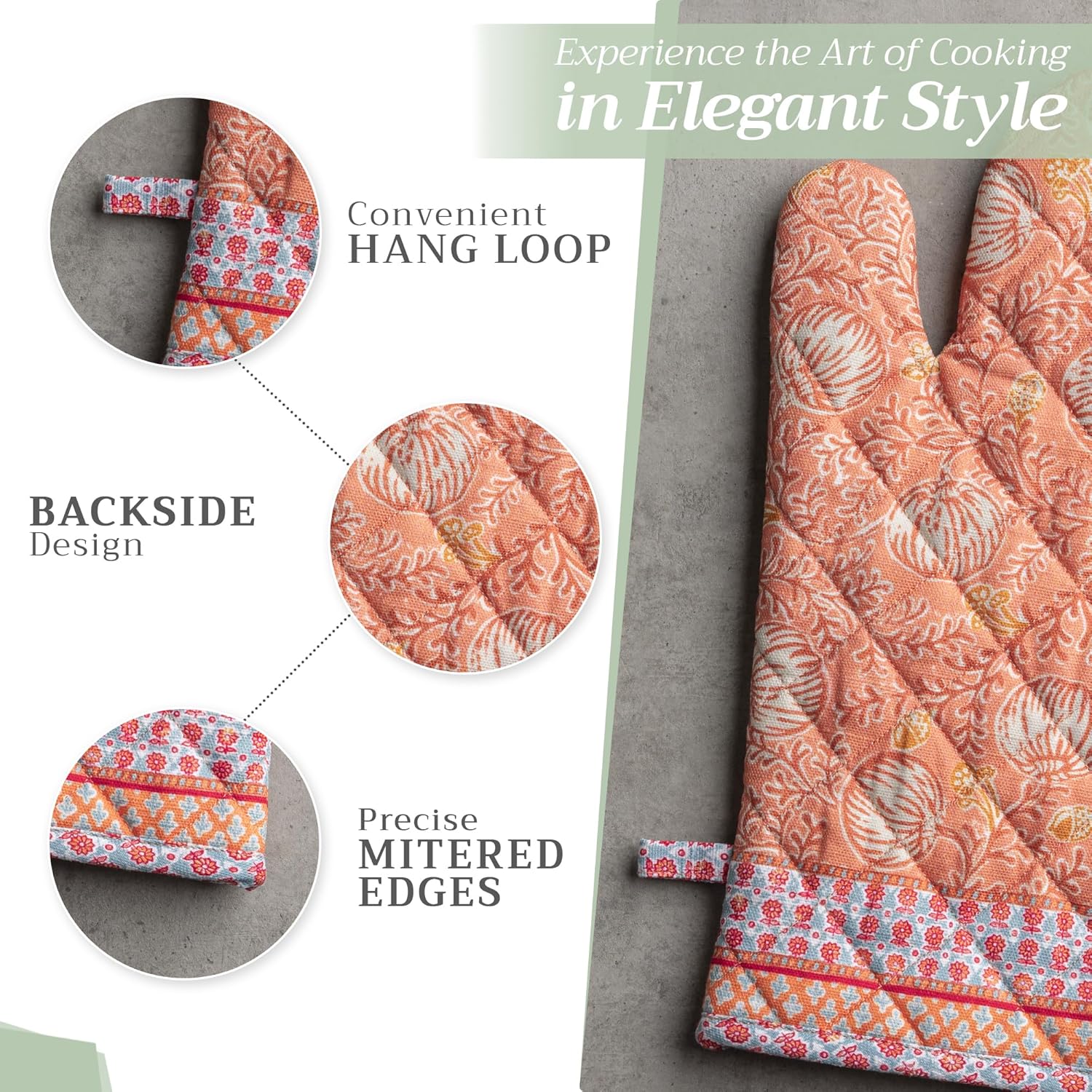 - 100% Quilted cotton: Crafted from thick, durable quilted cotton, this heat resistant oven mitt provides a soft feel, safe handling, and lasting performance. A must-have kitchen accessory for everyday cooking, roasting, or baking tasks