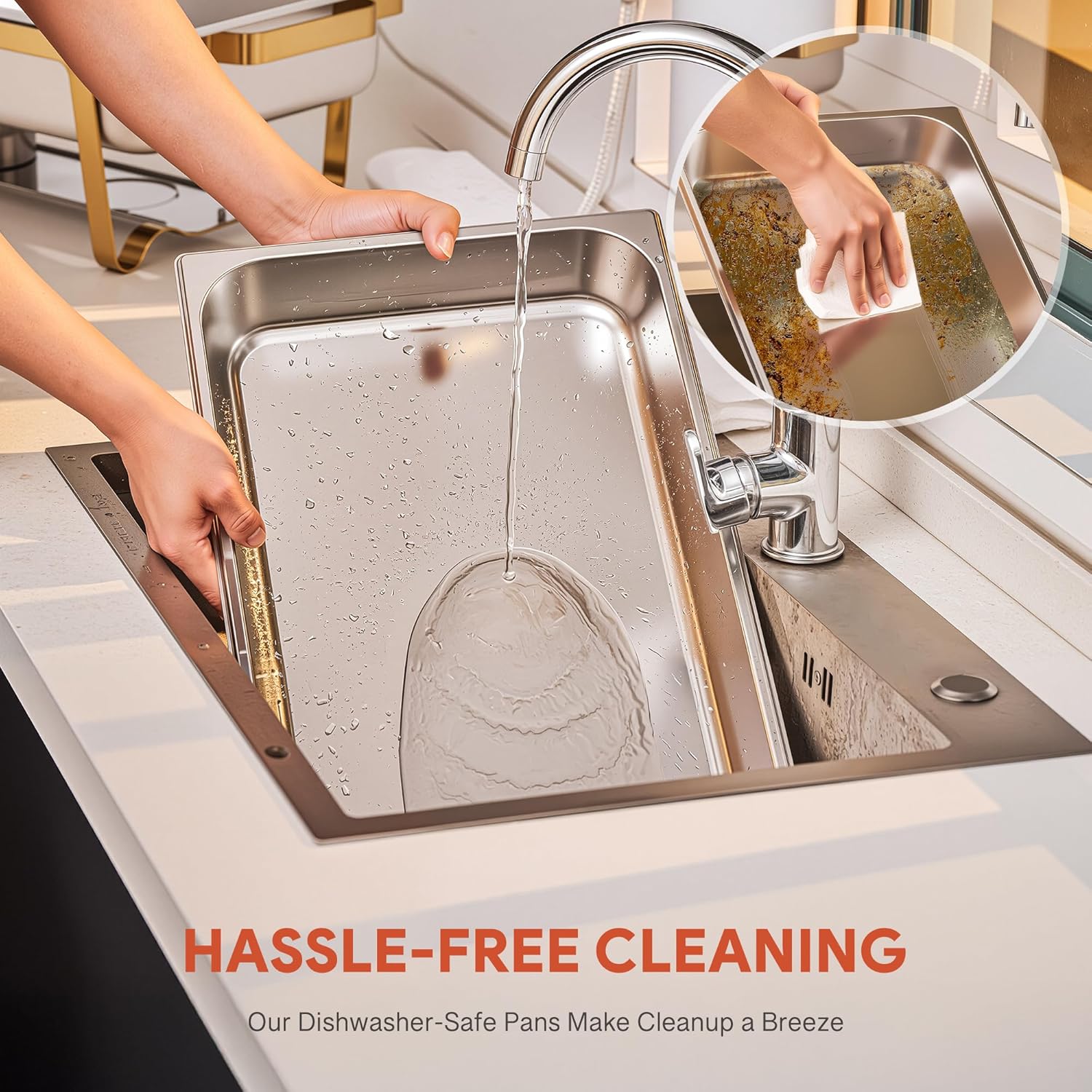 - Feed a Crowd: Each pack of gold and silver chafing dish offers a 9-quart capacity, perfect for serving large groups at parties, weddings, banquets, and any indoor or outdoor event