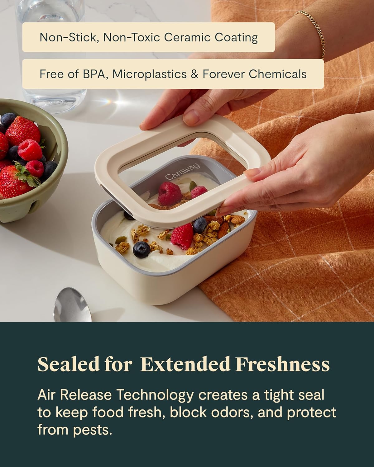 - NON-TOXIC & ECO-FRIENDLY MATERIALS: With a ceramic-coated surface, these containers are free from BPA, PFAS, and other harmful chemicals, ensuring safe and sustainable food storage.