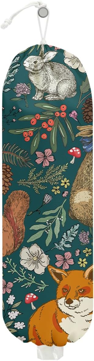 Forest Animals Plastic Bag Holder, Wall Mount Grocery Bag Holder, Plastic Storage bag, Pull Rope Free Adjustment, Plastic Bag Holders for Grocery Bags, Plastic Bag Dispenser for Home Kitchen Cabinet