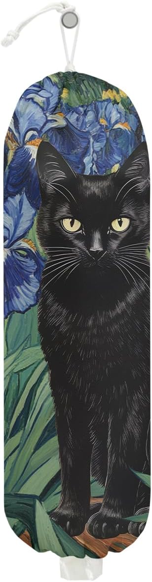 Flower Cat Plastic Bag Holder, Wall Mount Grocery Bag Holder, Plastic Storage bag, Pull Rope Free Adjustment, Plastic Bag Holders for Grocery Bags, Plastic Bag Dispenser for Home Kitchen
