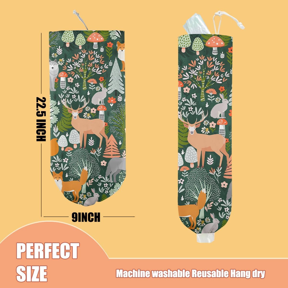 Forest Animals Plastic Bag Holder, Wall Mount Grocery Bag Holder, Plastic Storage bag, Pull Rope Free Adjustment, Plastic Bag Holders for Grocery Bags, Plastic Bag Dispenser for Home Kitchen