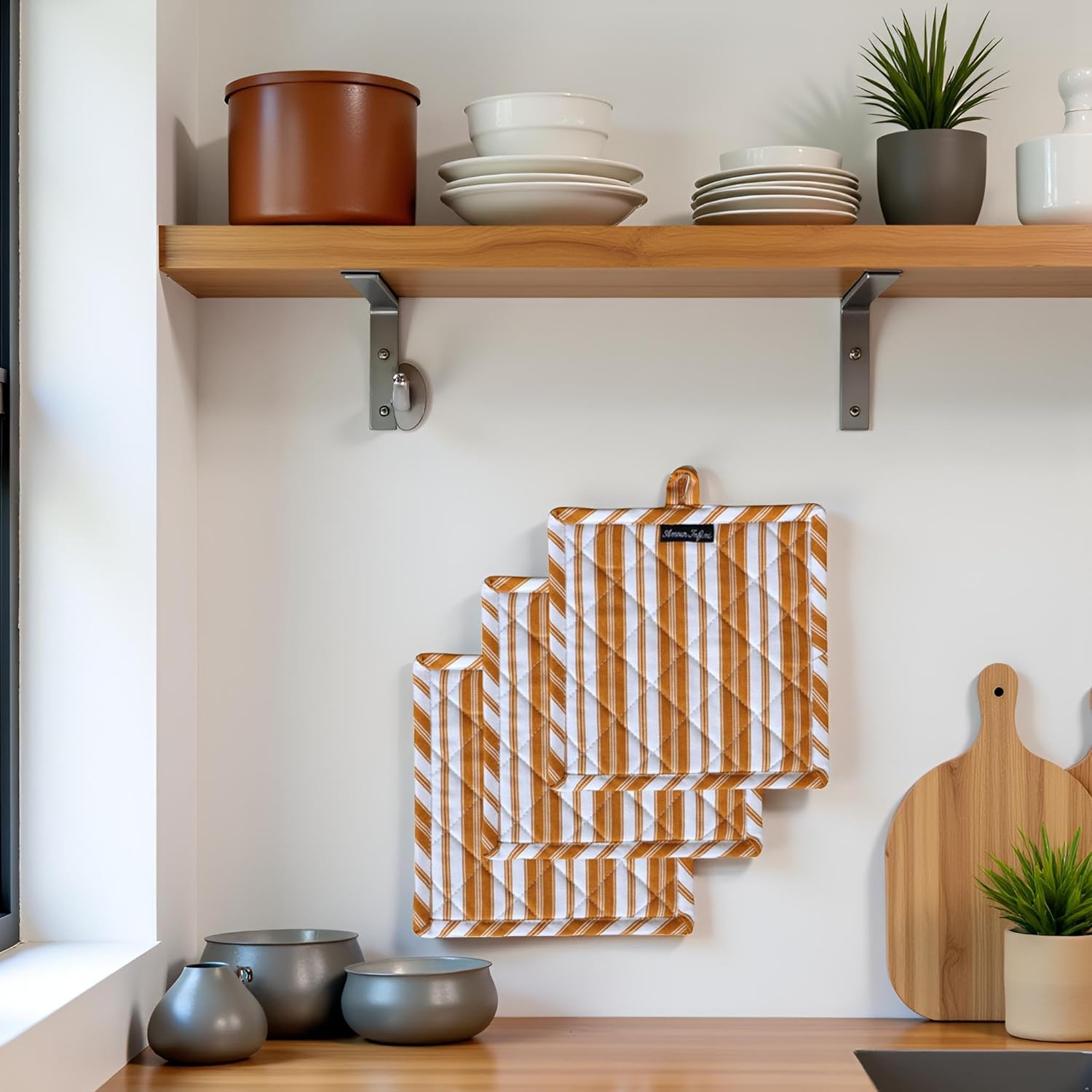 - Hanging Loops for Easy Storage : Built-in loops allow you to conveniently hang the pot holders within easy reach in your kitchen. Keeps your cooking space organized and adds a stylish accent to your decor.