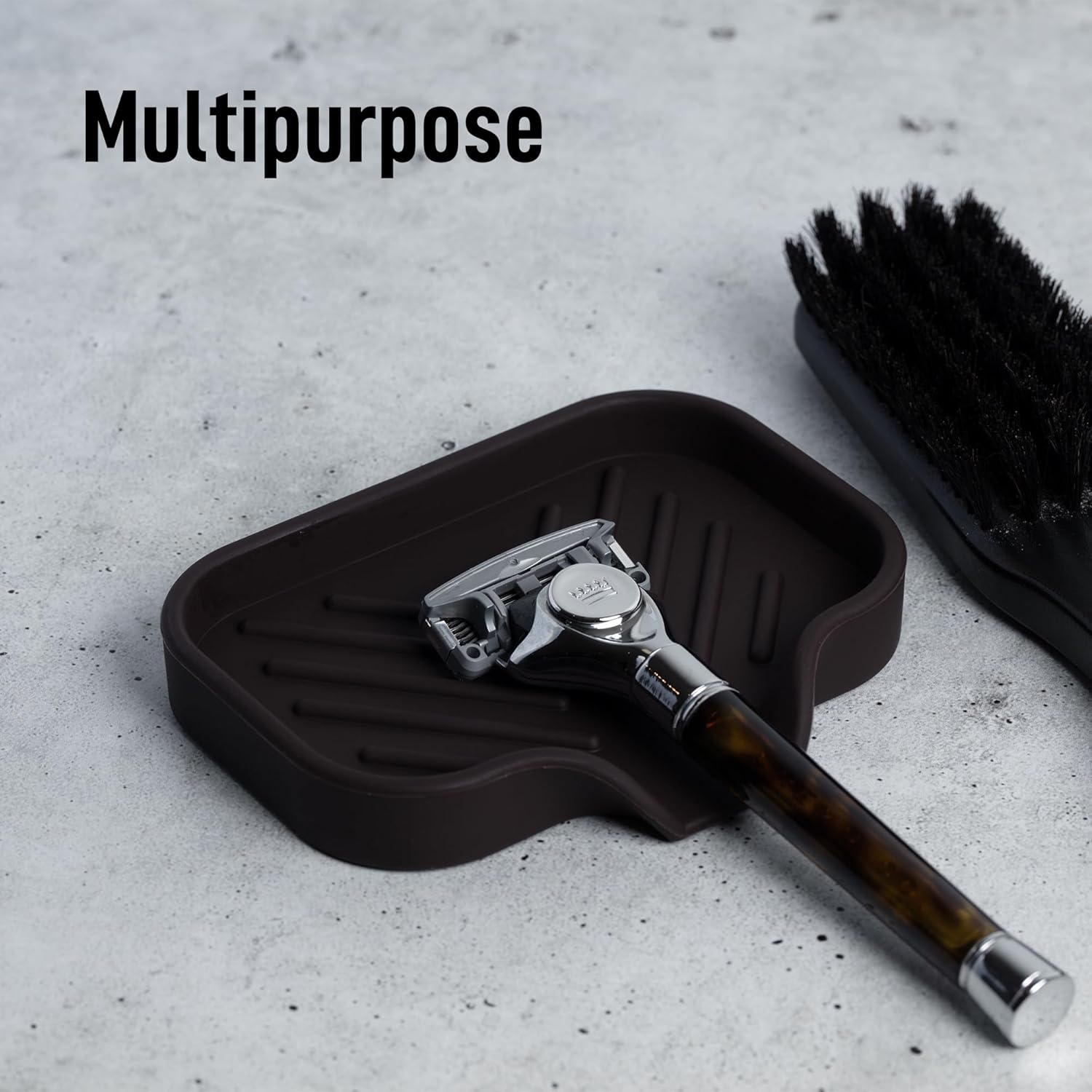 - MESS-FREE COUNTERTOPS: Keep your sink area tidy and free from soap residue with our small silicone sponge holder. Measuring 4.9 x 3.3 inches, this compact tray is ideal for holding a sponge, scrubber, soap bar, or small brush. Its space-saving design is perfect for use in kitchens, bathrooms, laundry rooms, or vanities—great for organizing small essentials like jewelry, makeup, or accessories.