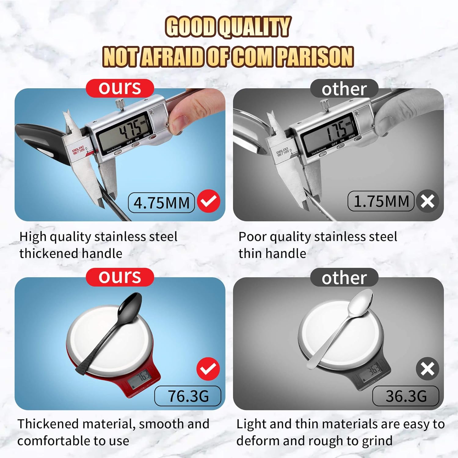 - Modern Style with Anti-Slip Handle : The unique hammered handle design not only adds a modern touch but also provides anti-slip functionality, ensuring a comfortable and secure grip during use. Multiple colors are available for your choice, allowing for effortless coordination with dinnerware sets of any style