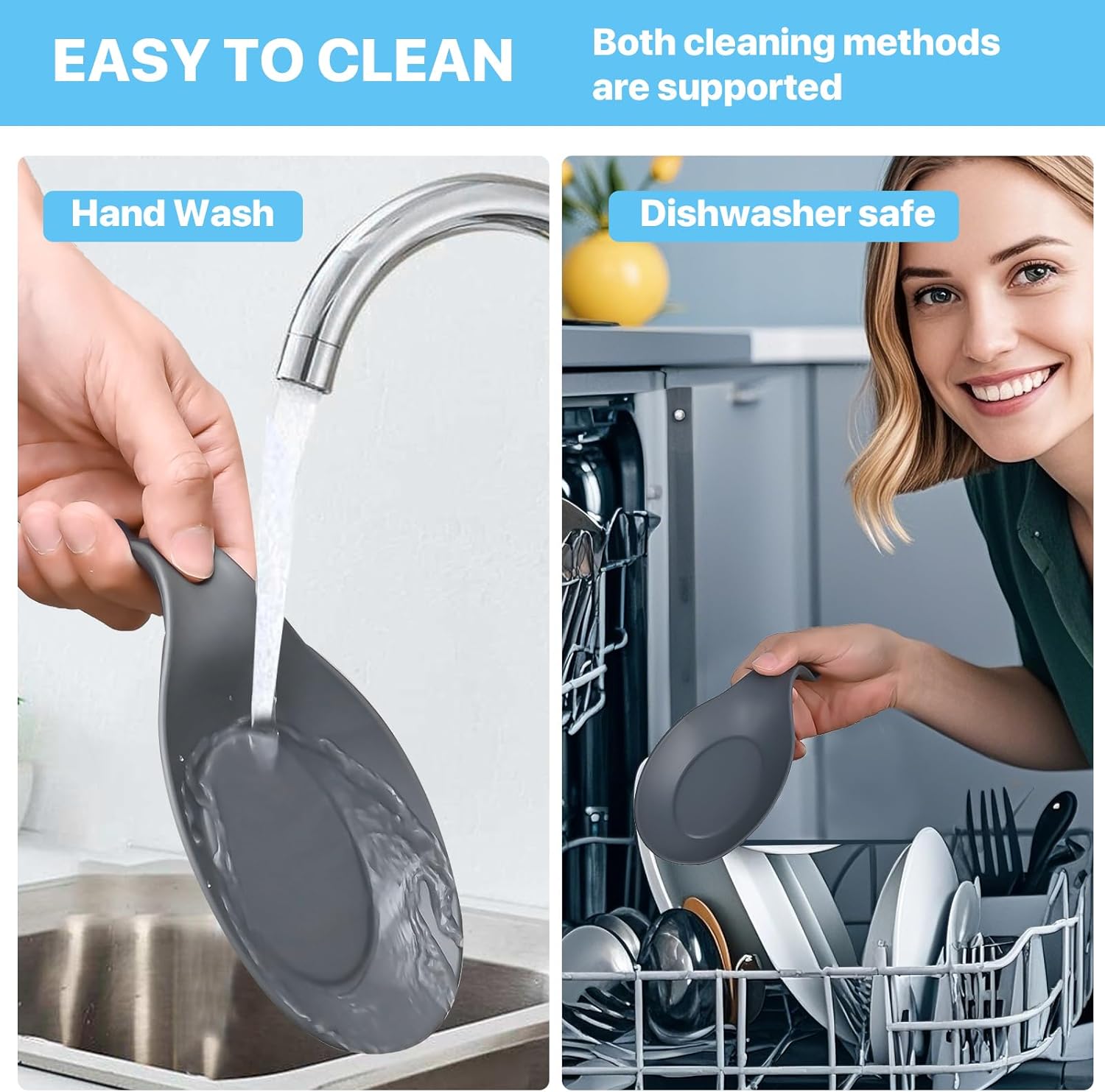 - Rational Design: The silicone spoon rest is large enough to hold multiple spatula, eggbeater, spoon, or sponge, soap, etc. The end of the spoon rest for stove top is curved to support the handle part of the kitchen utensils, which is easy to place.