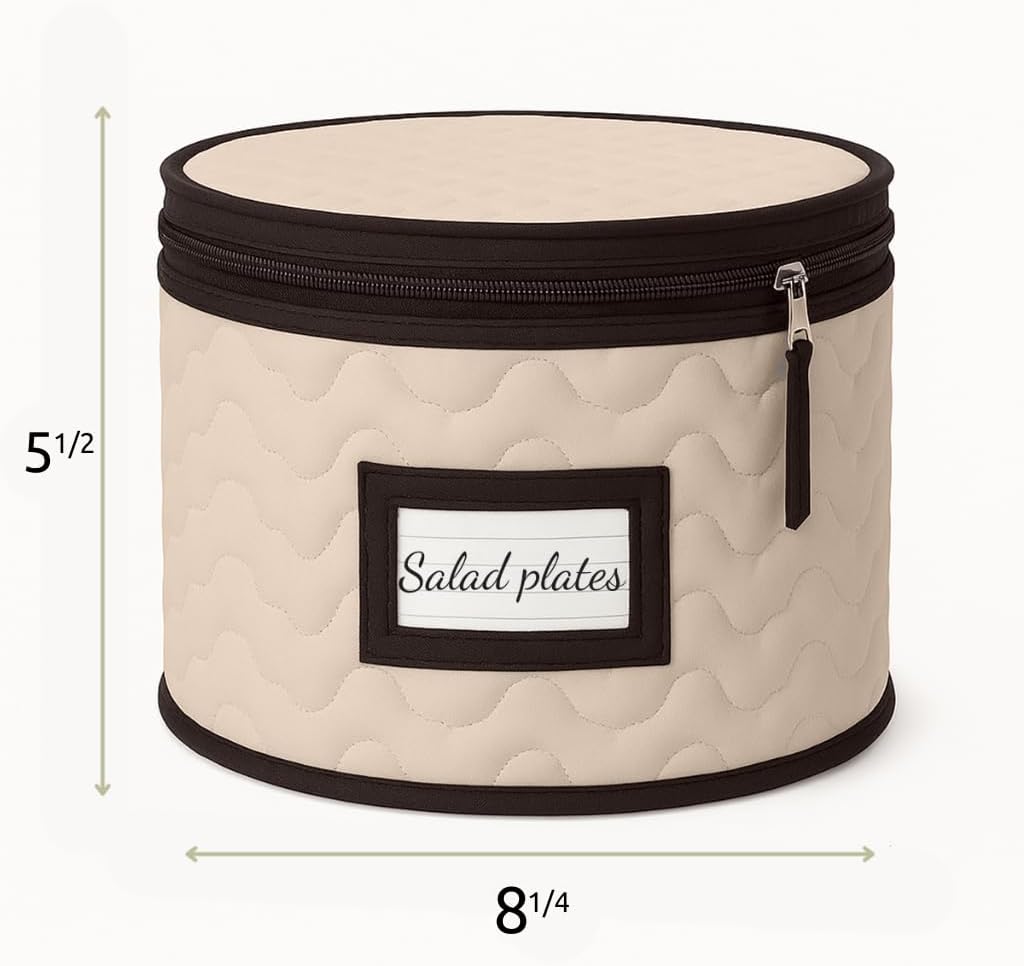Salad Plates Storage - Quilted Microfiber China Organizer Box with Dividers , Protects & Organizes Up to 12 Plates of 8" - Ideal for Seasonal Dishware Protection