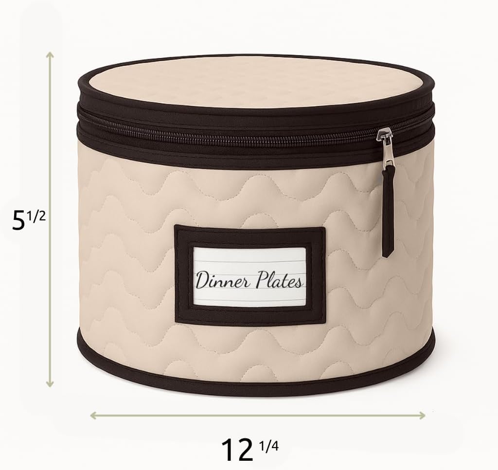 Dinner Plates Storage - Quilted Microfiber China Organizer Box with Dividers , Protects & Organizes Up to 12 Plates of 12" - Ideal for Seasonal Dishware Protection