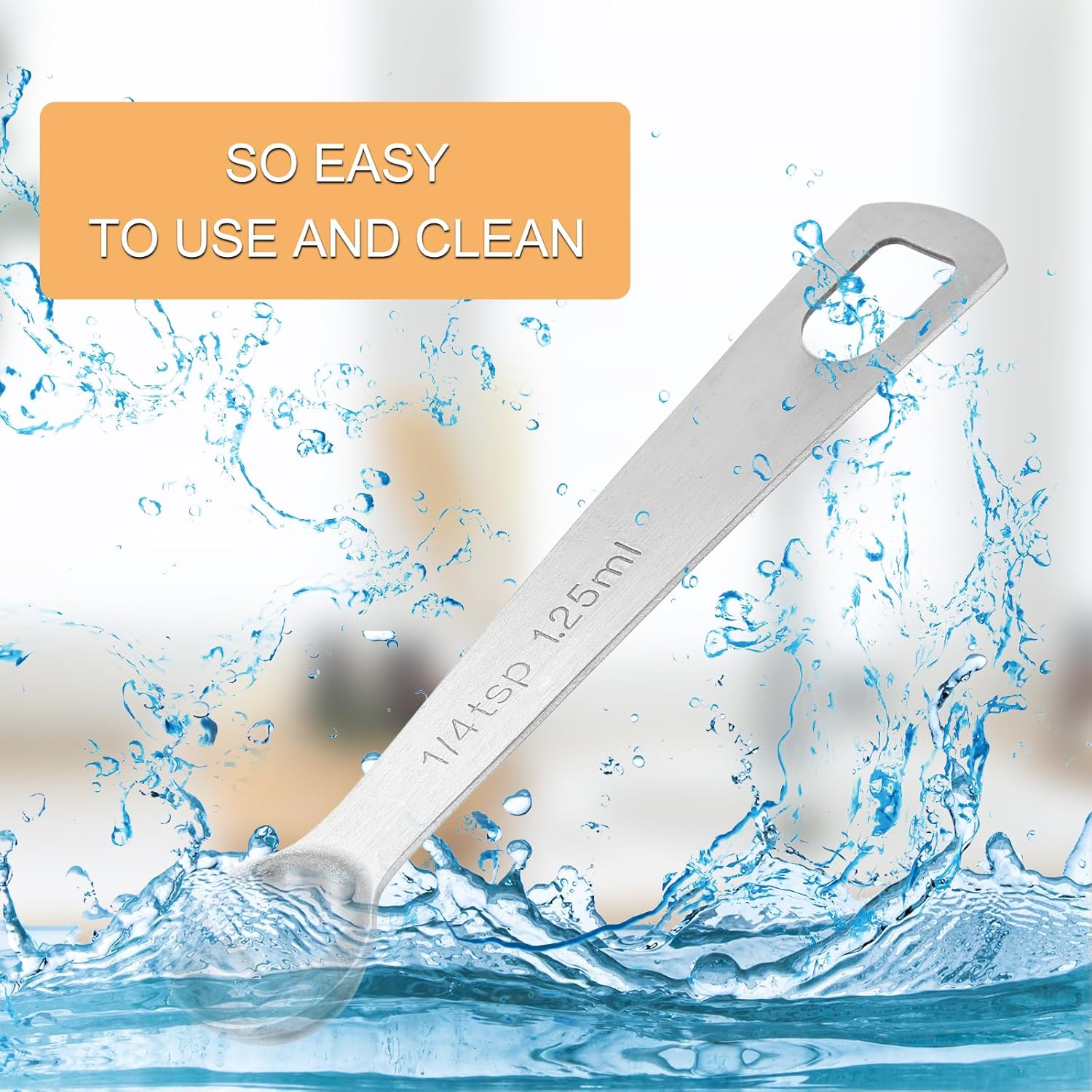 - 【Easy to Clean】In addition to the thoughtful design, our long handle measuring spoons are also very convenient to clean and maintain. Whether it is a simple hand wash or automatic cleaning in the dishwasher, it can be easily handled. After use, just wipe it clean and keep it dry to ensure the long-term cleanliness and service life of long handle tiny measuring spoons