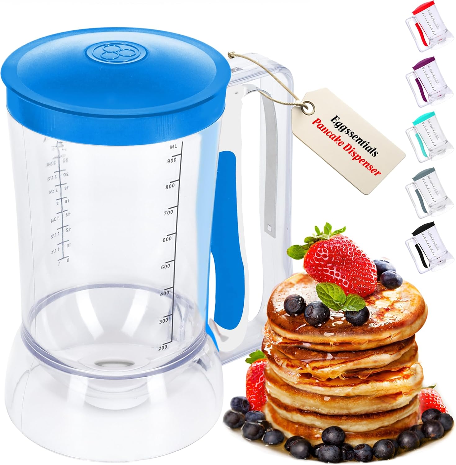 - Stylish Color Options: Available in Blue, Teal, Grey, Black, Red, and Purple our pancake batter dispenser adds a pop of color to your baking tools. Makes a great gift for home bakers!