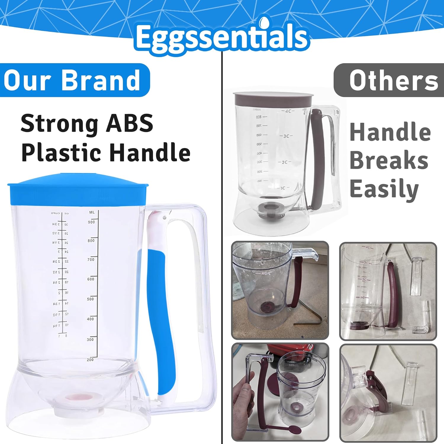Eggssentials Batter Dispenser – Easy Pour Pancake Batter Dispenser for Cupcakes, Muffins, Waffles & Griddle – Kitchen Baking Tool BPA-Free - Blue Color