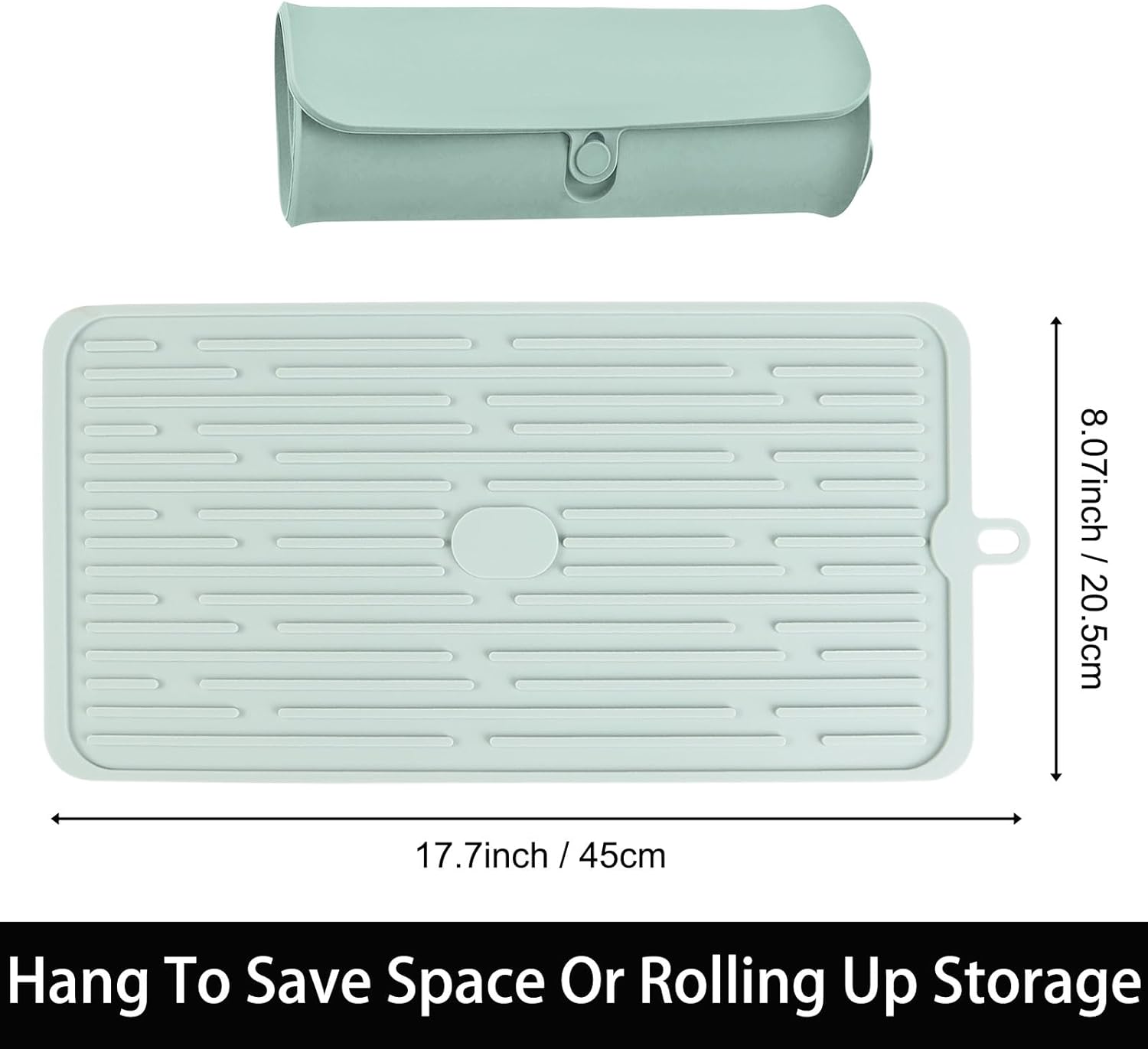 - EASY TO CLEAN AND STORAGE: Our dish mat drying is made of silicone. It's so easy to clean! Simply wipe off spills and water to clean, and dishwasher safe. The soft material easily rolls and folds up for storage, does not take up much space.